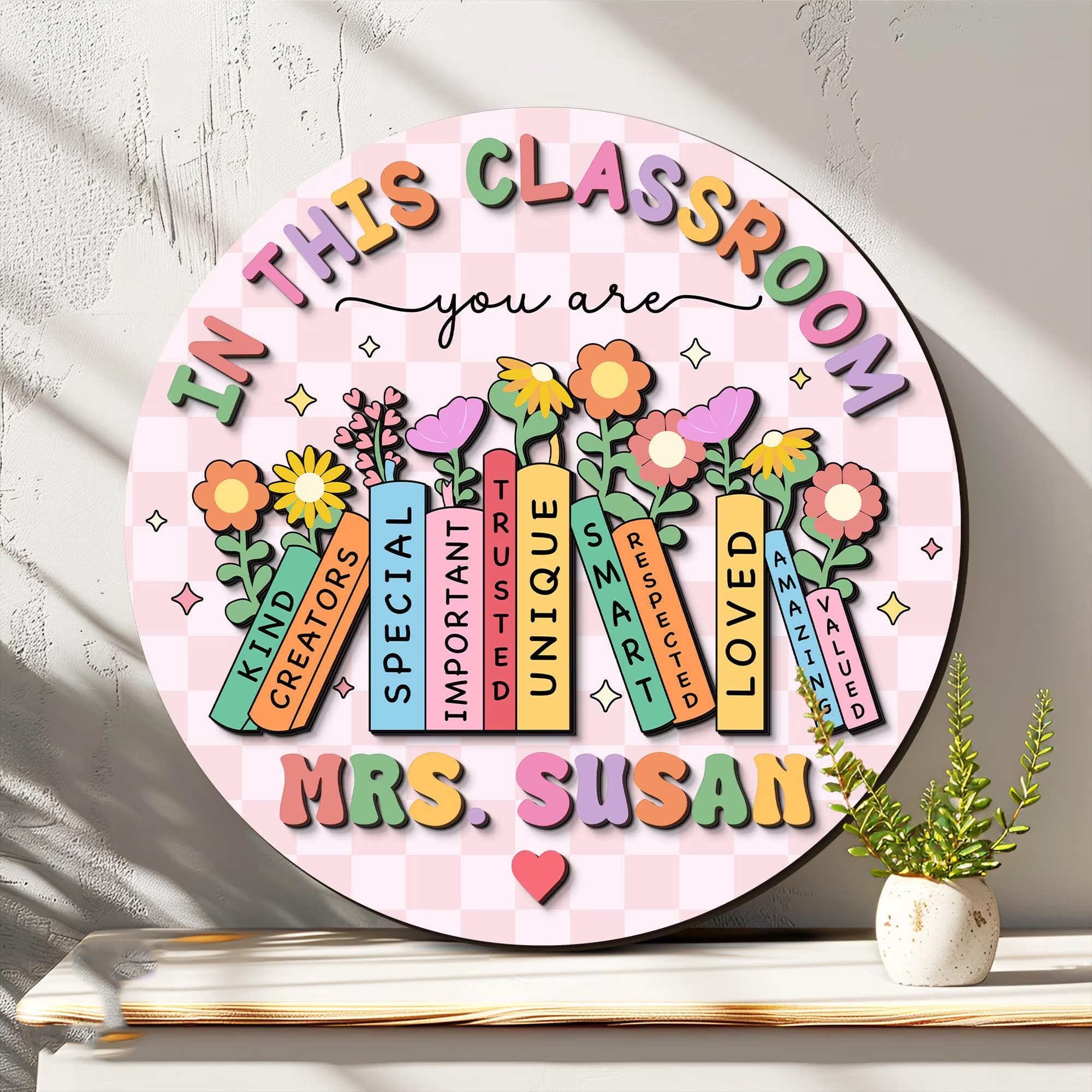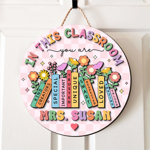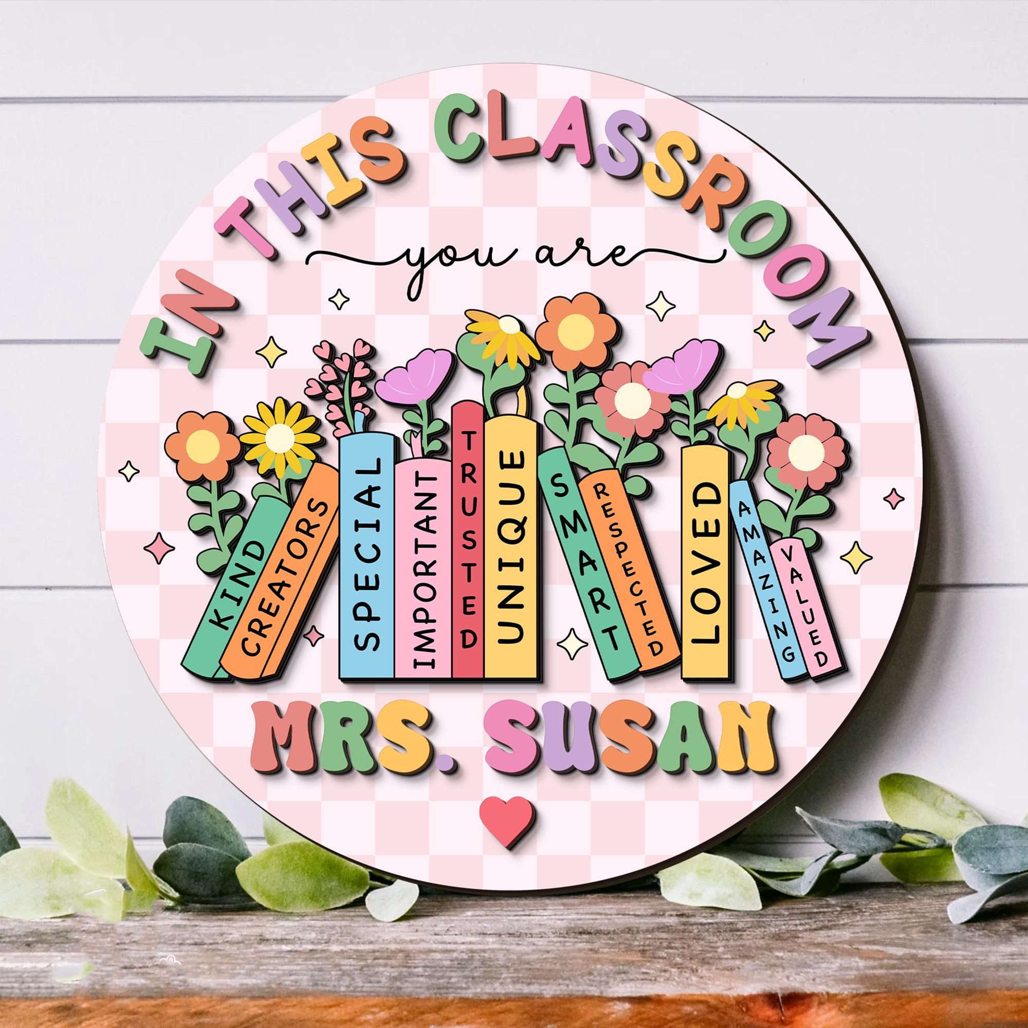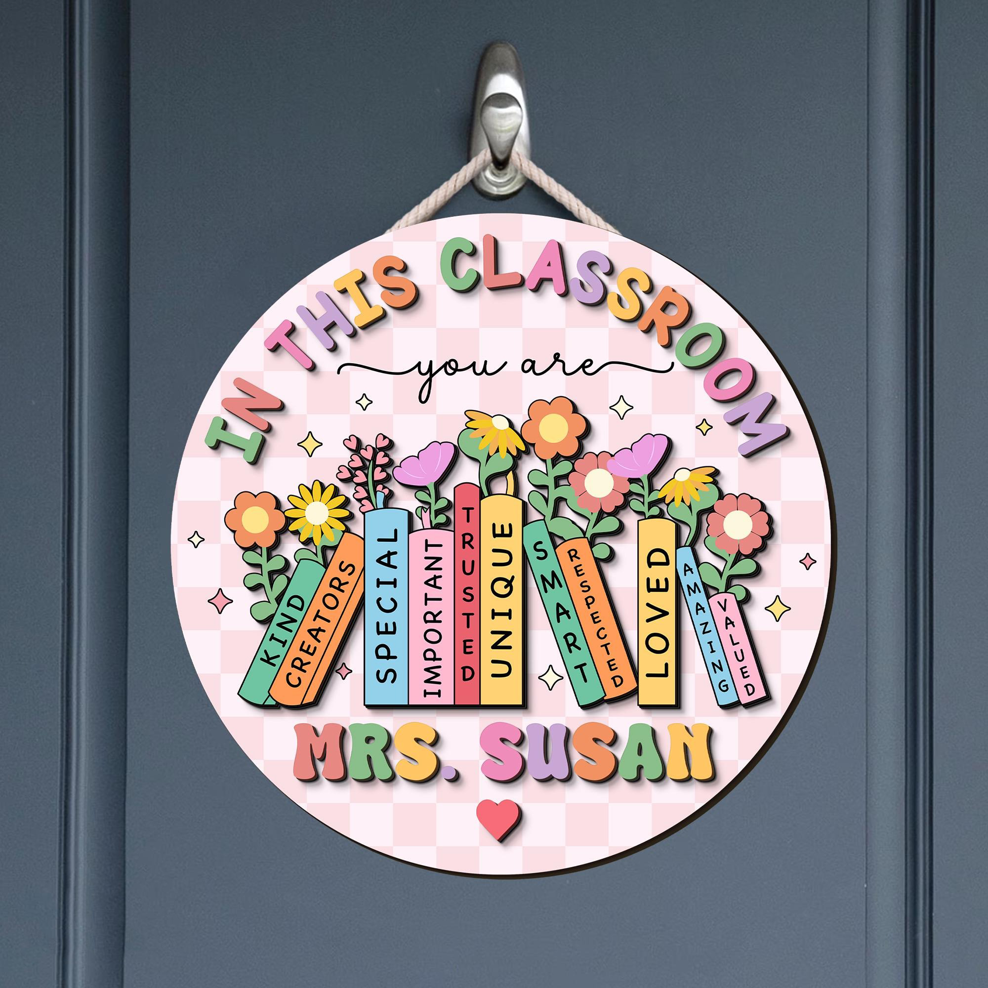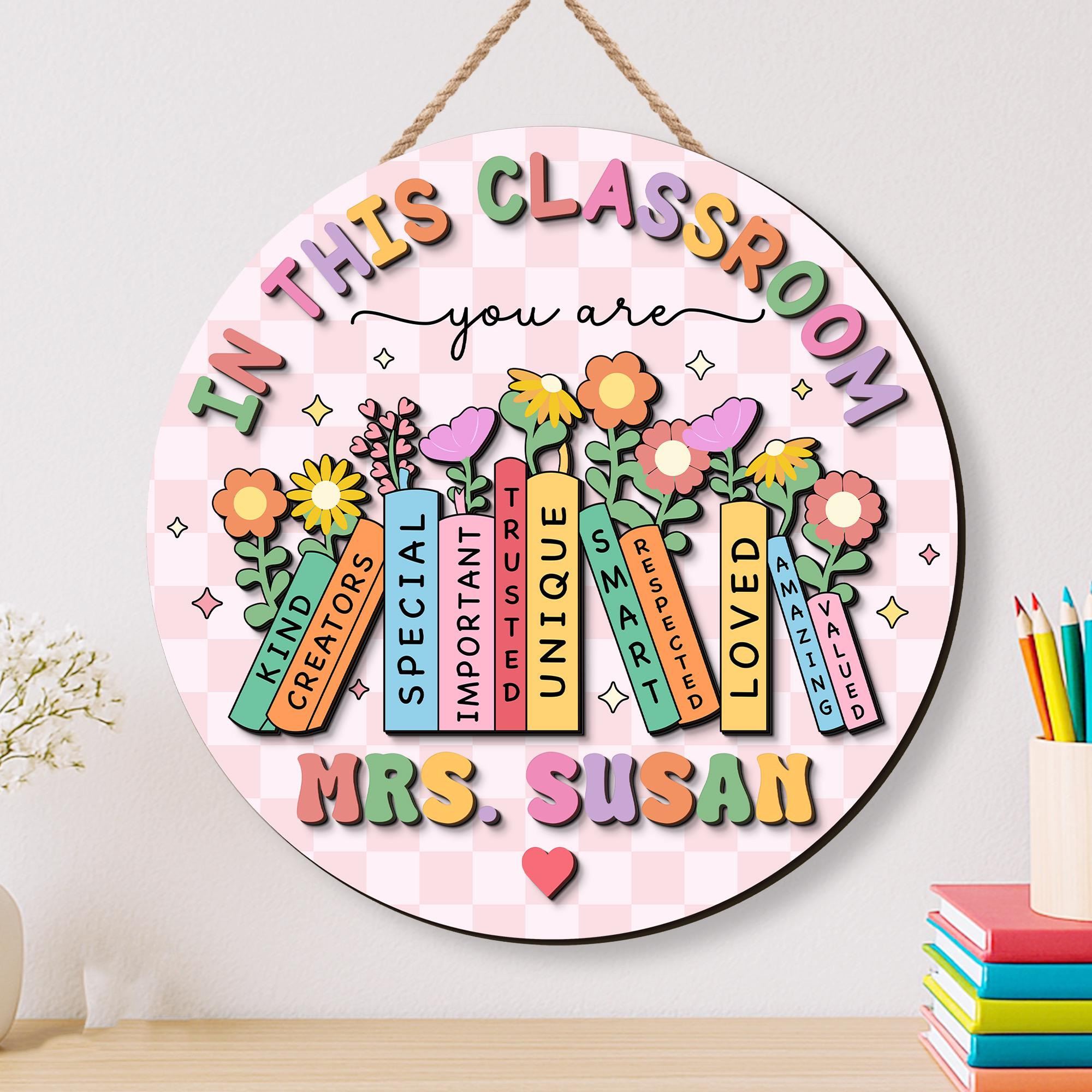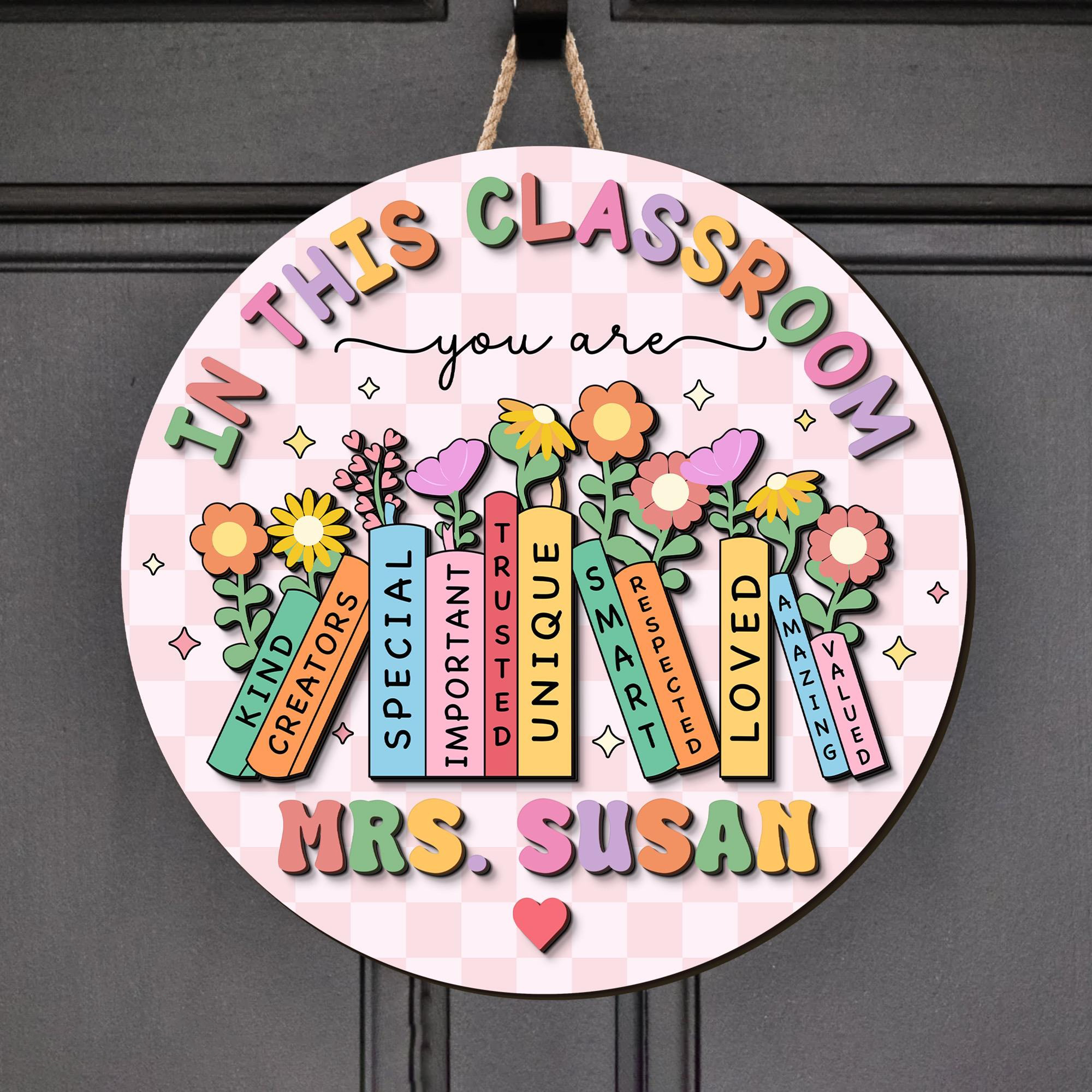 Personalized Teacher Door Hanger, Custom Teacher Name Sign, Gift For Teacher, Wooden Welcome Sign, Classroom Decor