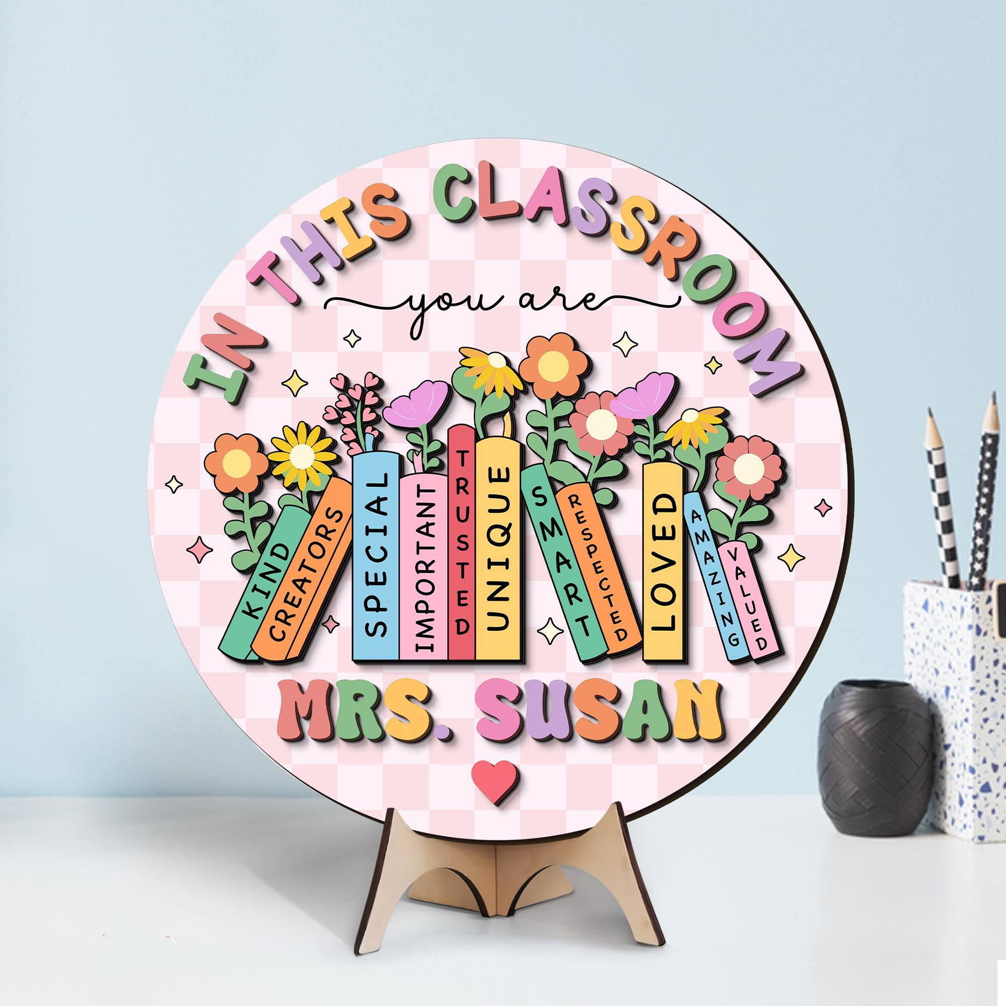 Brighten any classroom and make teachers feel truly appreciated with this personalized wooden teacher sign! Designed to inspire students and create a warm, welcoming environment, this charming wall decor is perfect for classroom setups, gifts, or educational space styling.