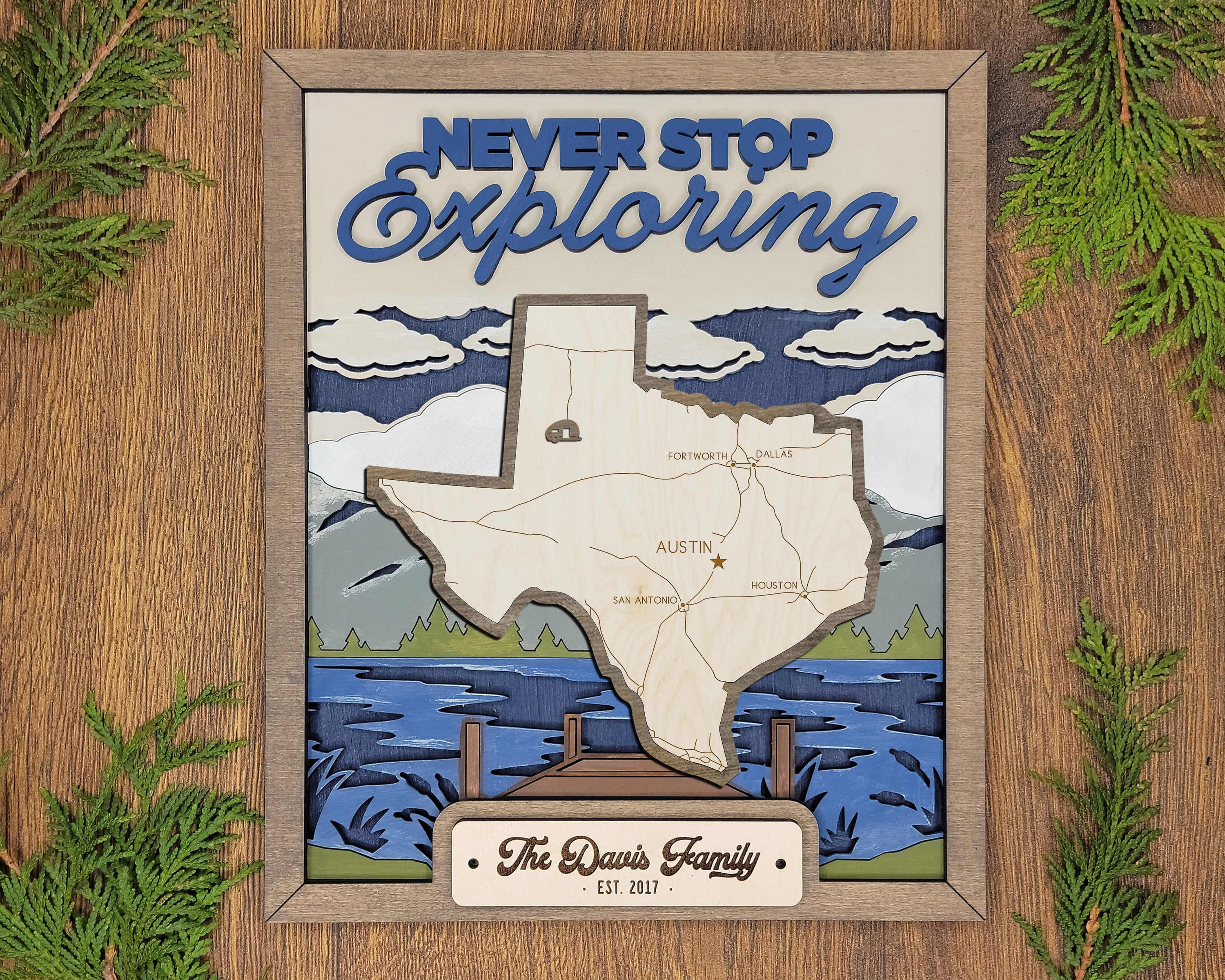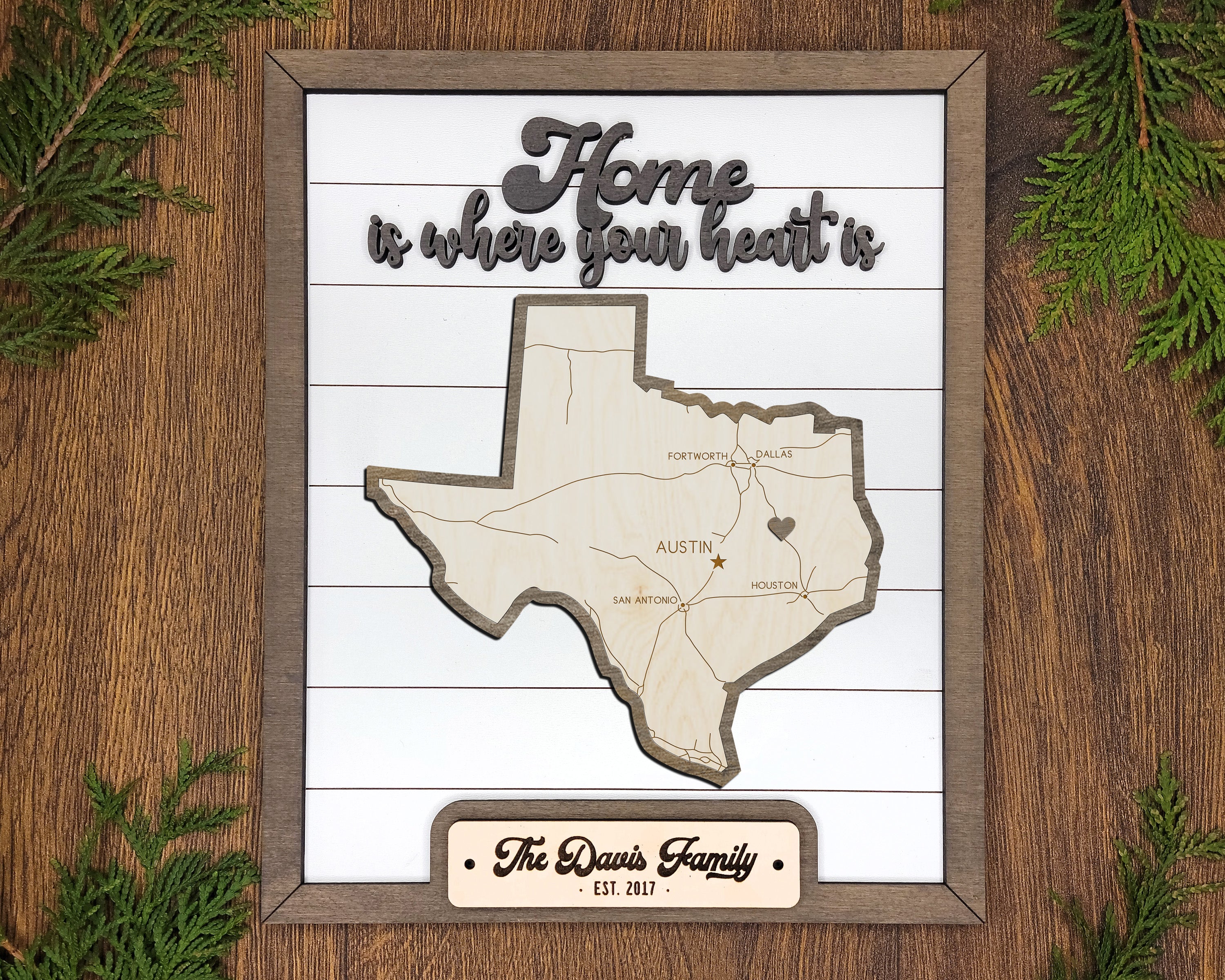 Personalized Texas States Wood Frame, 50 States 2 Layers Wood Plaque, Gift For Nature Lovers