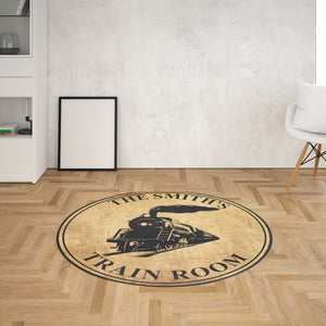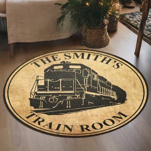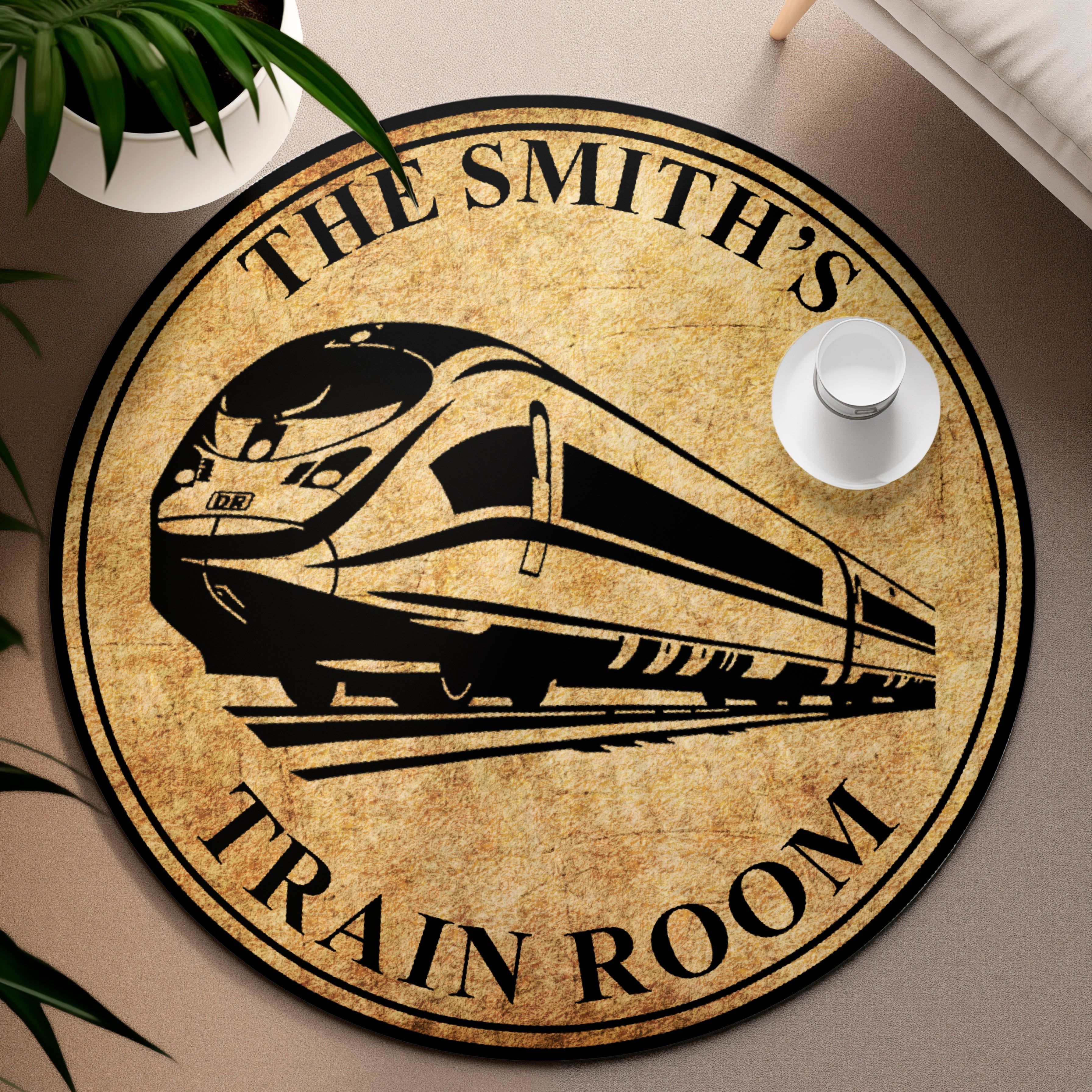 Personalized Train Room Round Rug, Family Round Mat, Living Room Decor