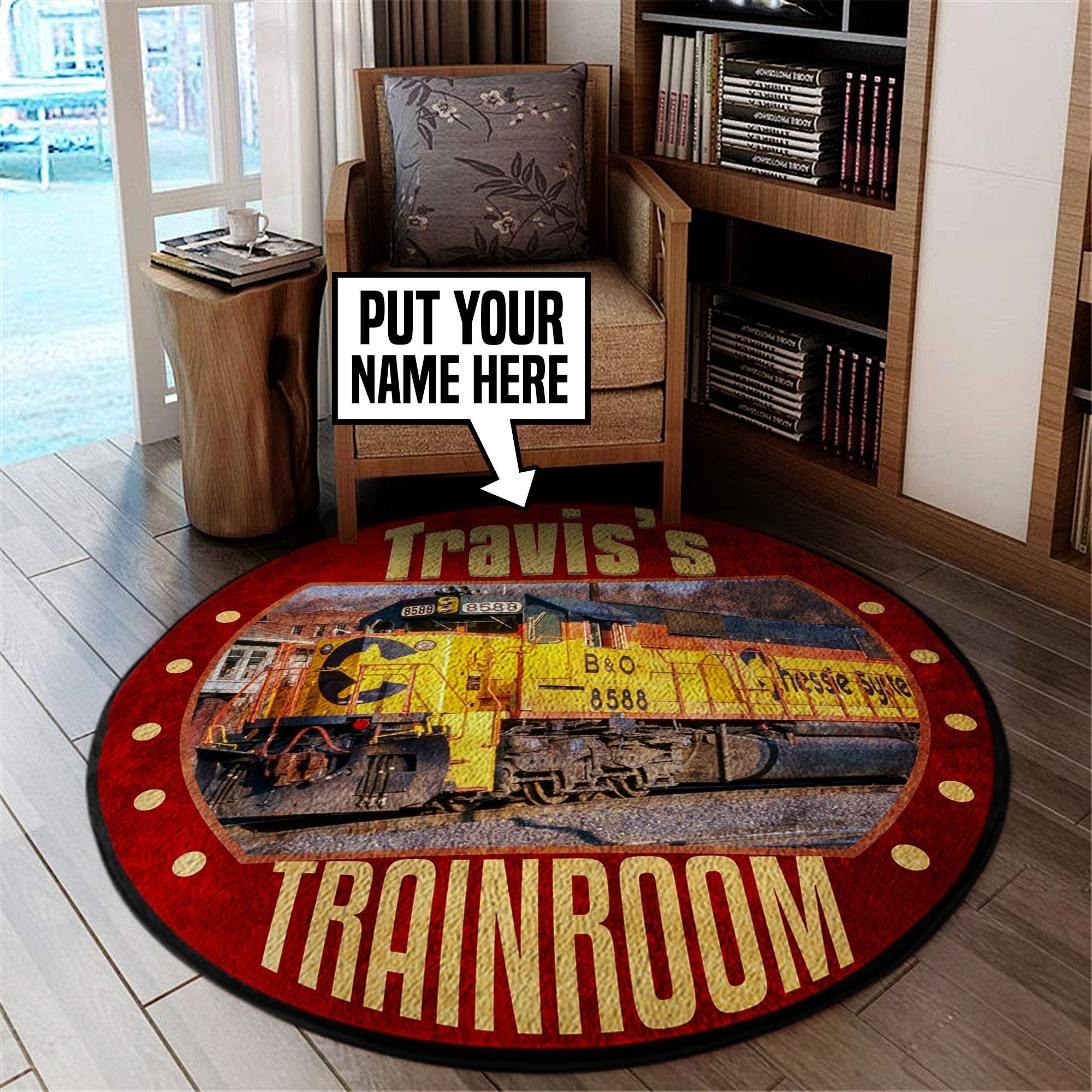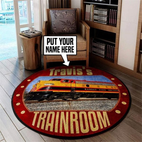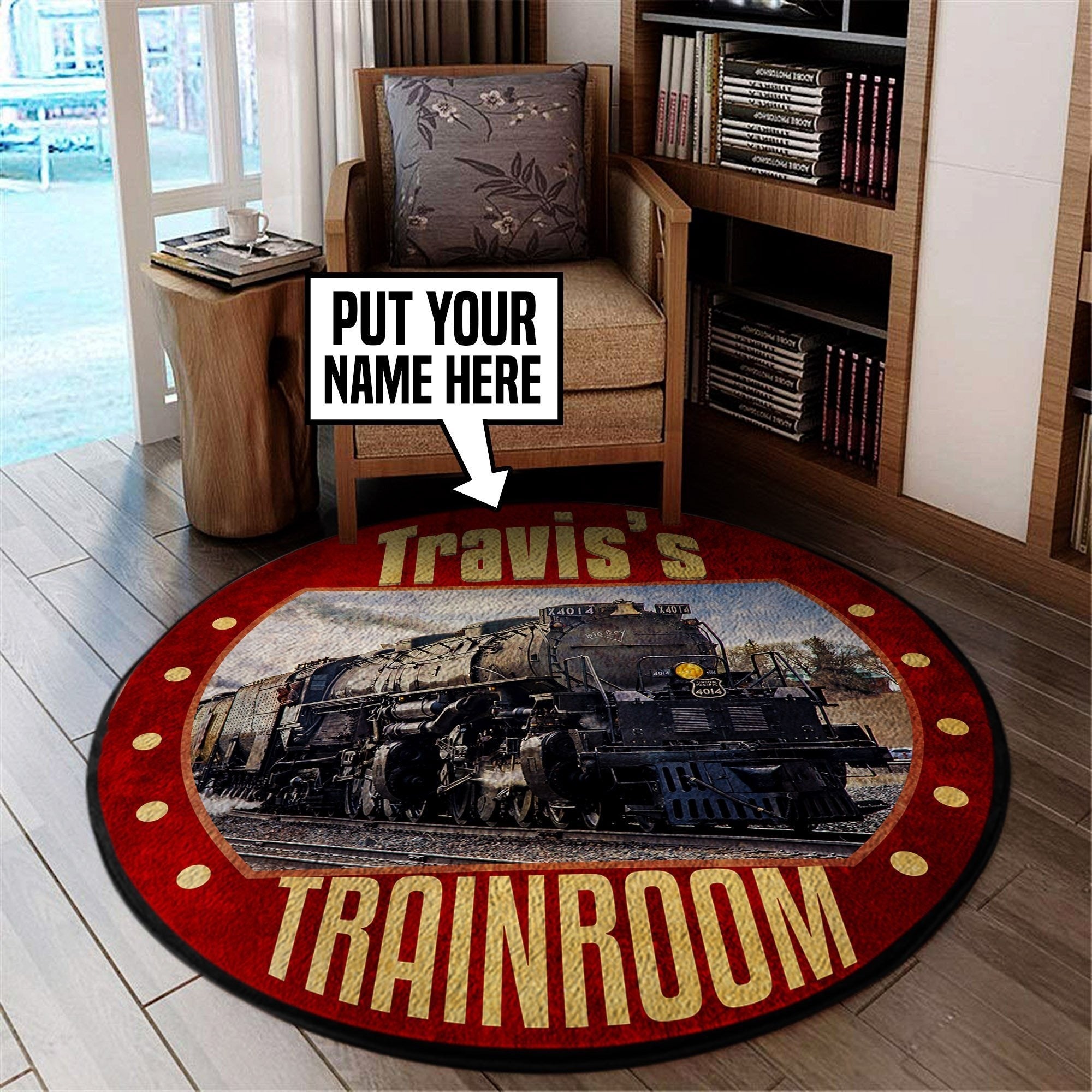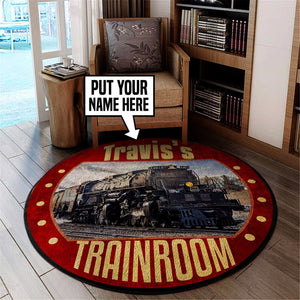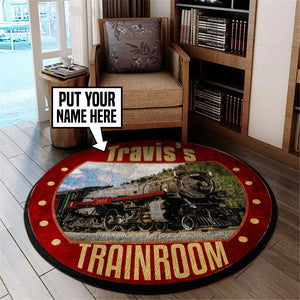 Personalized Trainroom Round Rug, Railroad Round Mat, Living Room Decor