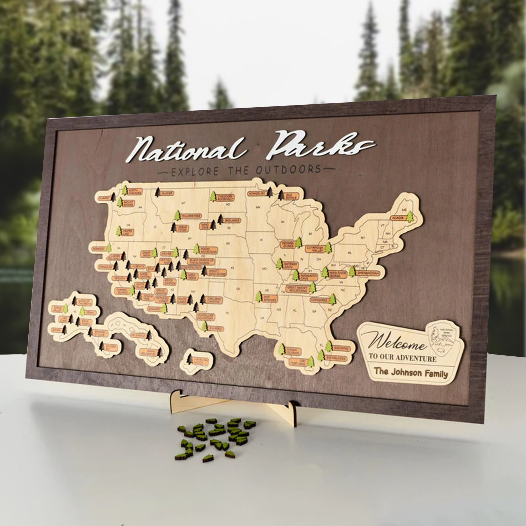 With our custom engraved badge, your wood map becomes a one-of-a-kind storyteller - marking your family name and the beginning of countless outdoor journeys through America's most beautiful parks.