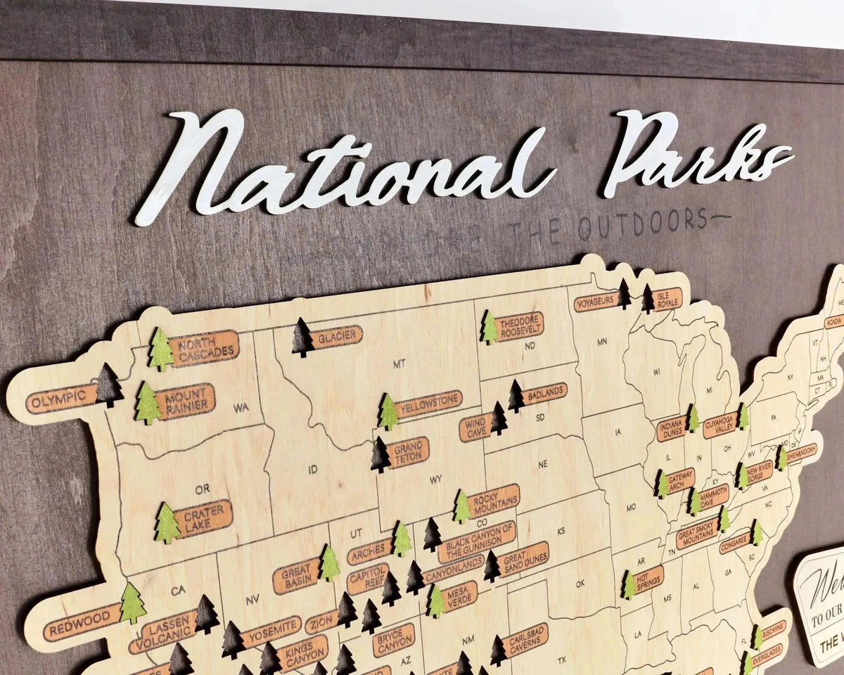 Perfect for nature lovers and explorers, it's an artistic way to display the national parks your family has visited.