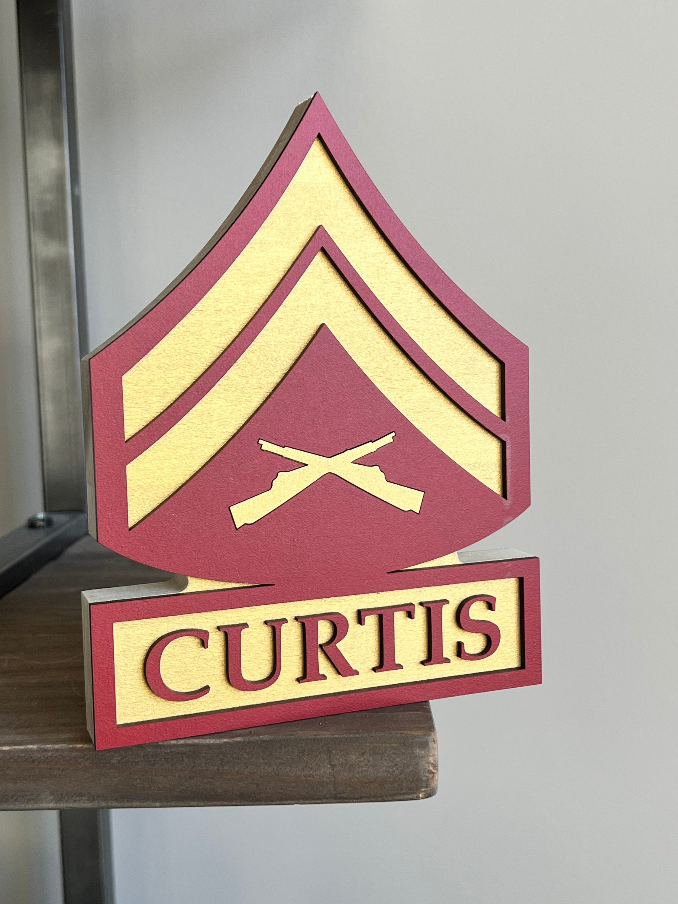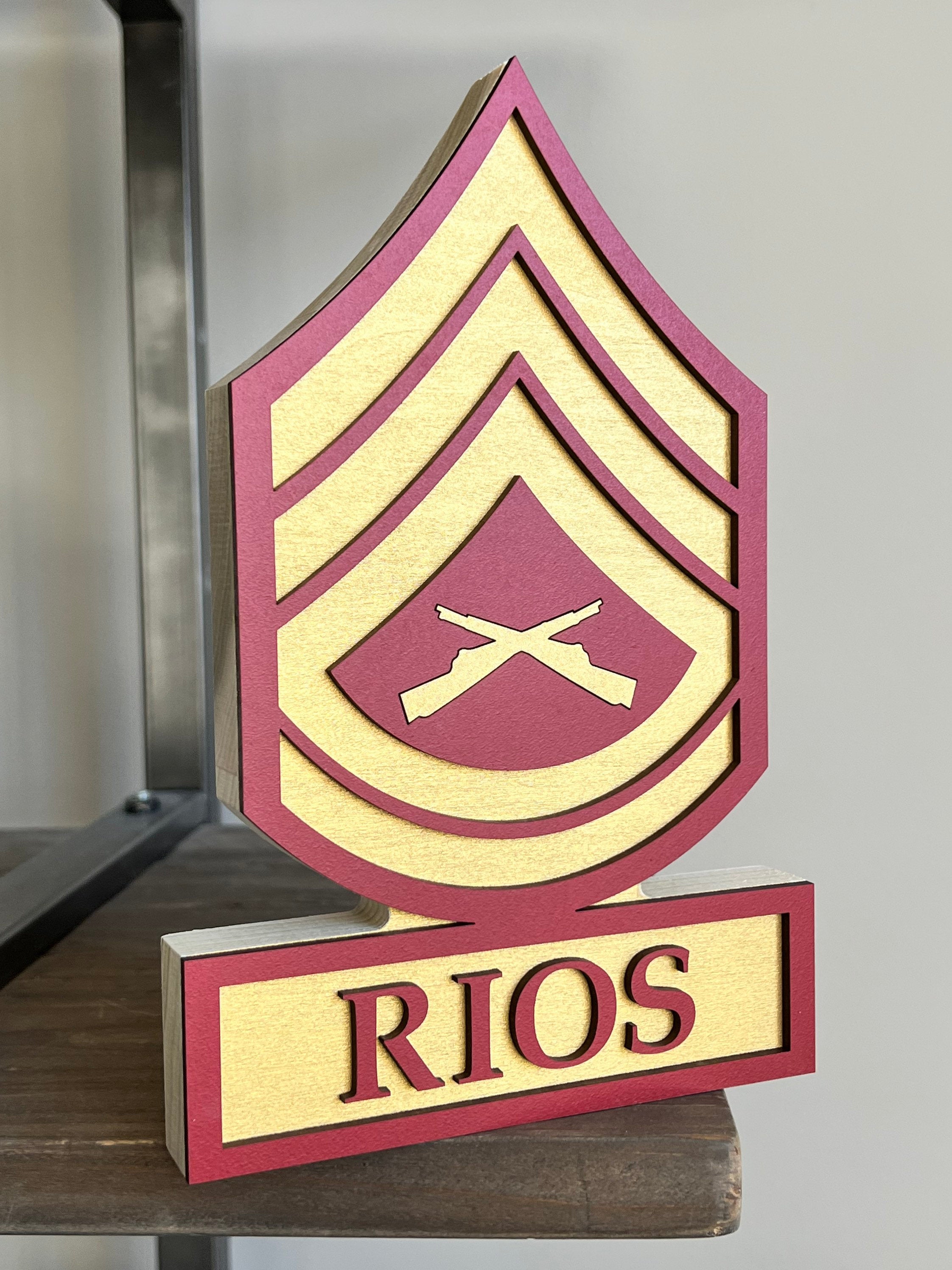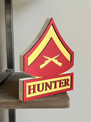 Personalized USMC Rank Self Standing Name Plate, Veteran Day Gifts