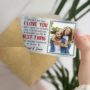 Carry your love wherever you go with the Personalized "When I Tell You I Love You" Aluminum Wallet Card. This meaningful and customizable wallet card is the perfect Valentine’s Day gift or anniversary surprise for couples. Engraved with a heartfelt message and the option to add a custom photo, this card serves as a sweet reminder of your love that your partner can keep close to their heart every day.