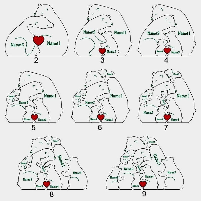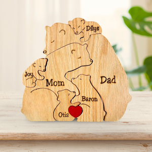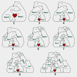 Personalized Engraved Wooden Bear Family Puzzle, Hugging Bear Puzzle, Family Gifts