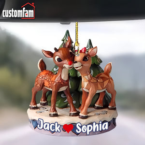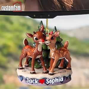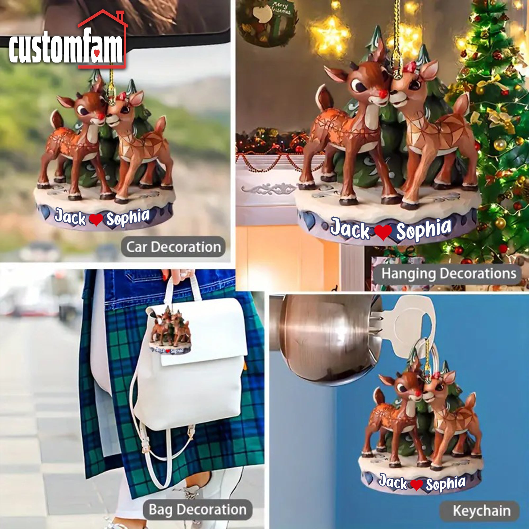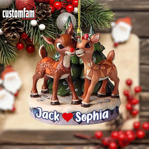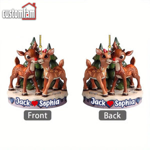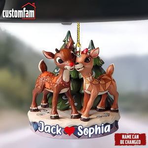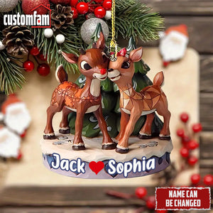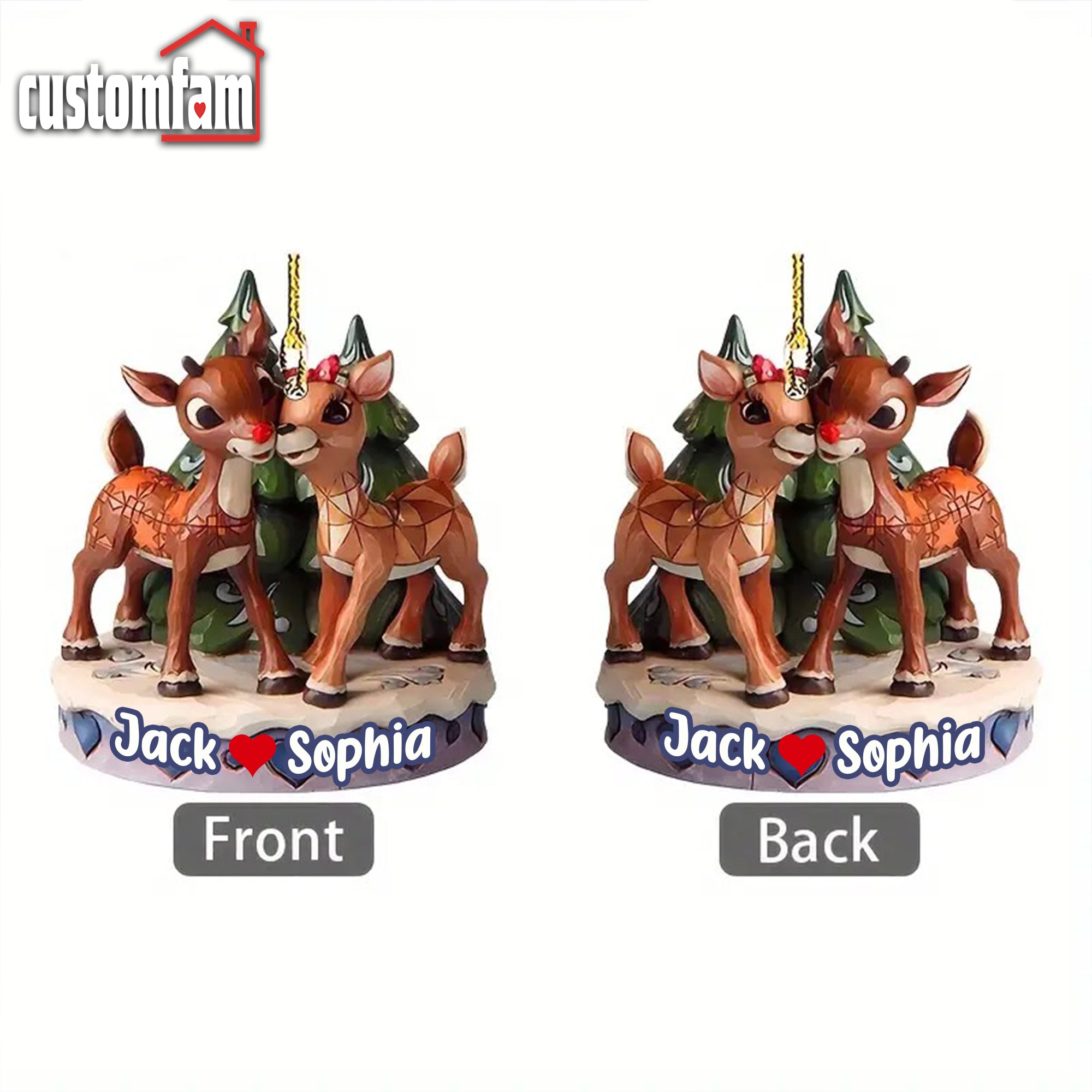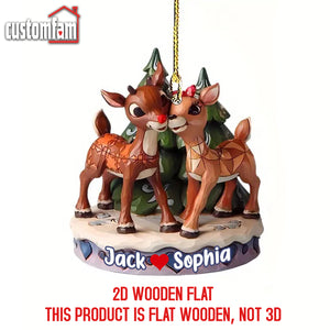 Personalized wooden Flat Reindeer Christmas Ornaments, Gift For Couple