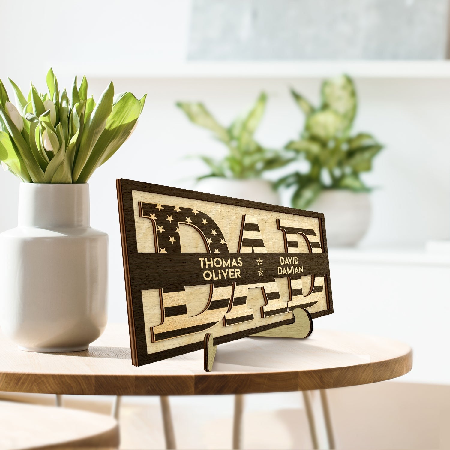 Personalized Wooden Plaque With Stand, Custom Kids Name Gift For Father, Father’s Day Gift, Gifts For Dad
