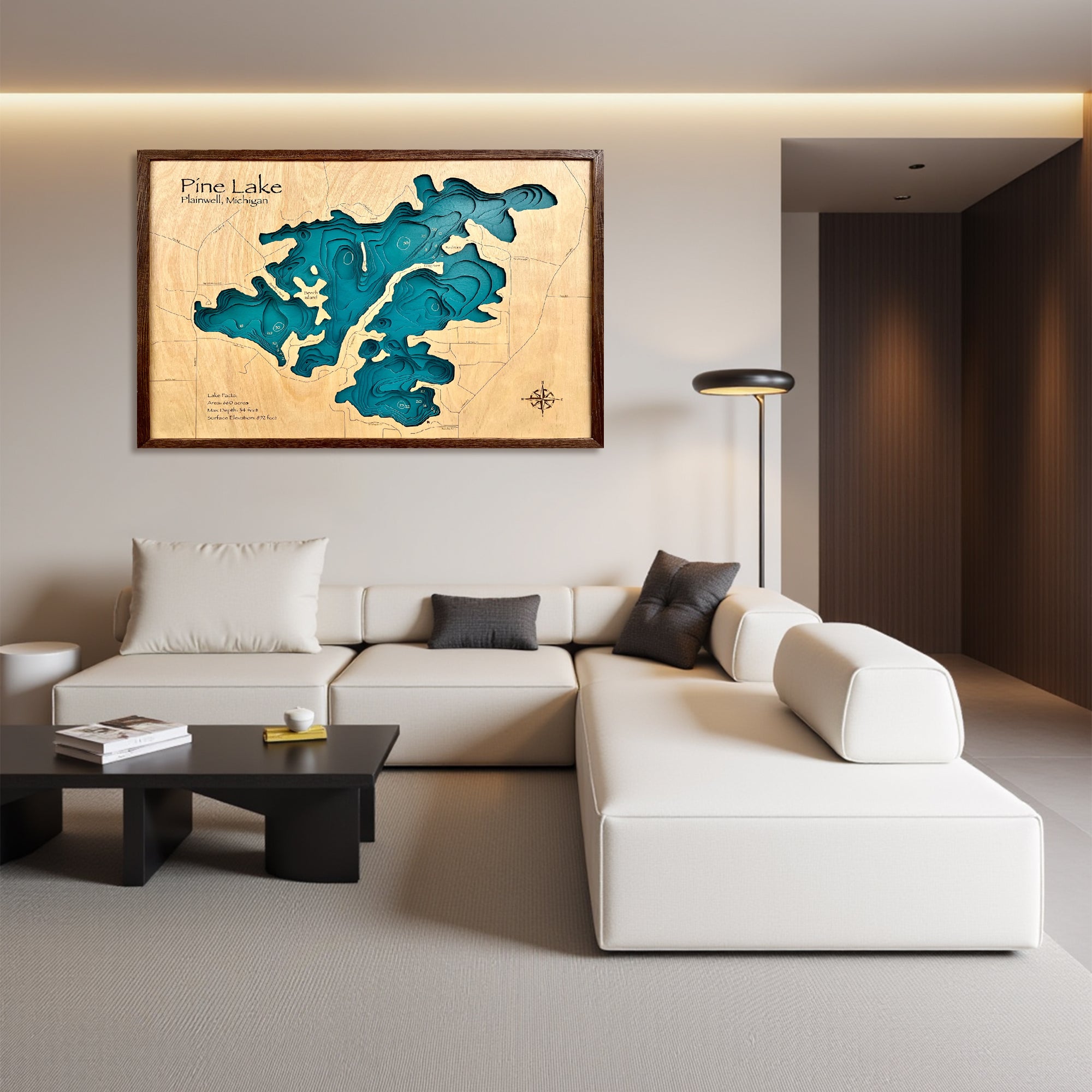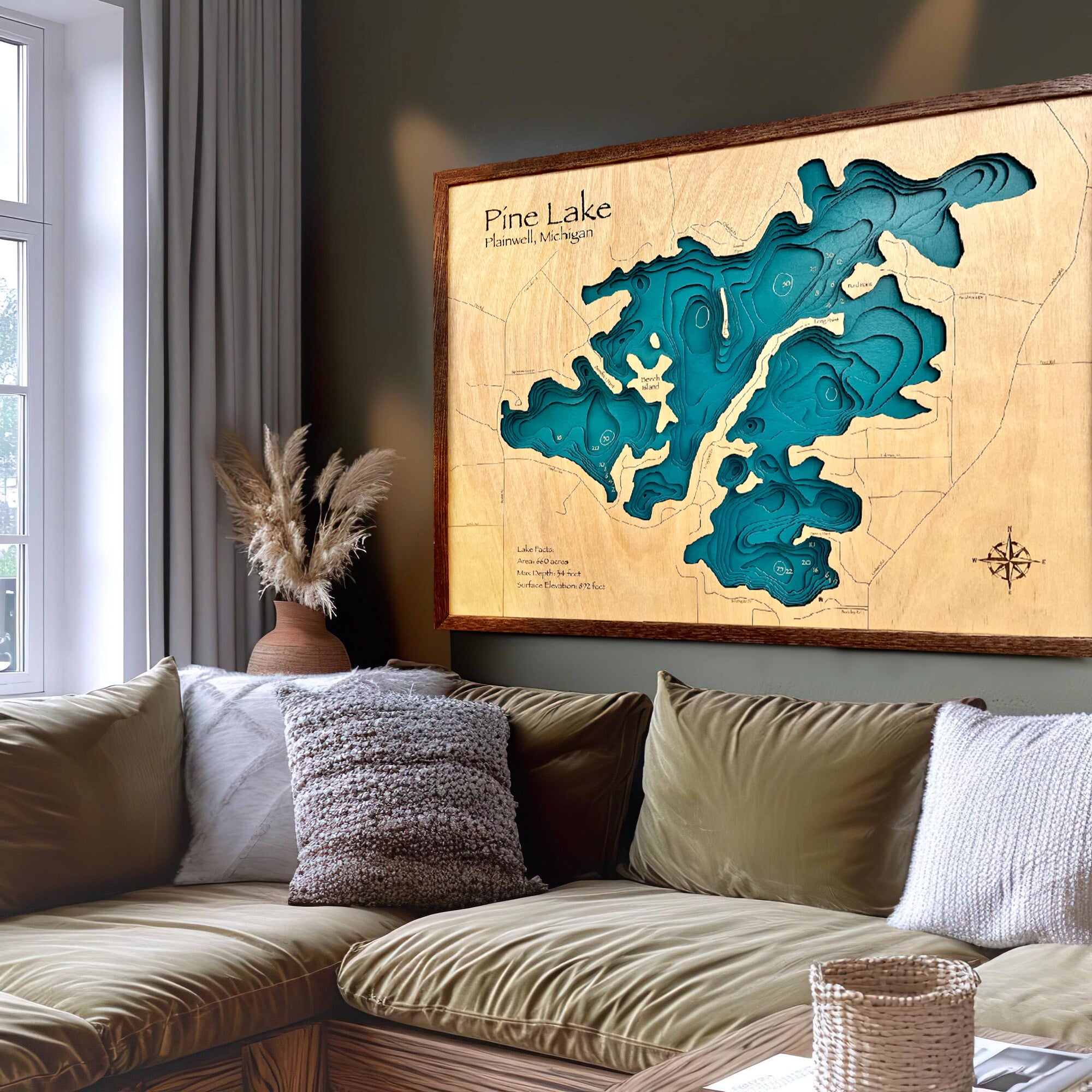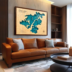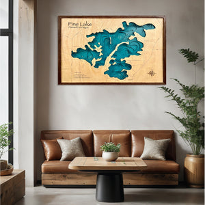 Pine Lake Customize Wood Art, Topographic Lake Map, Lake Wall Art