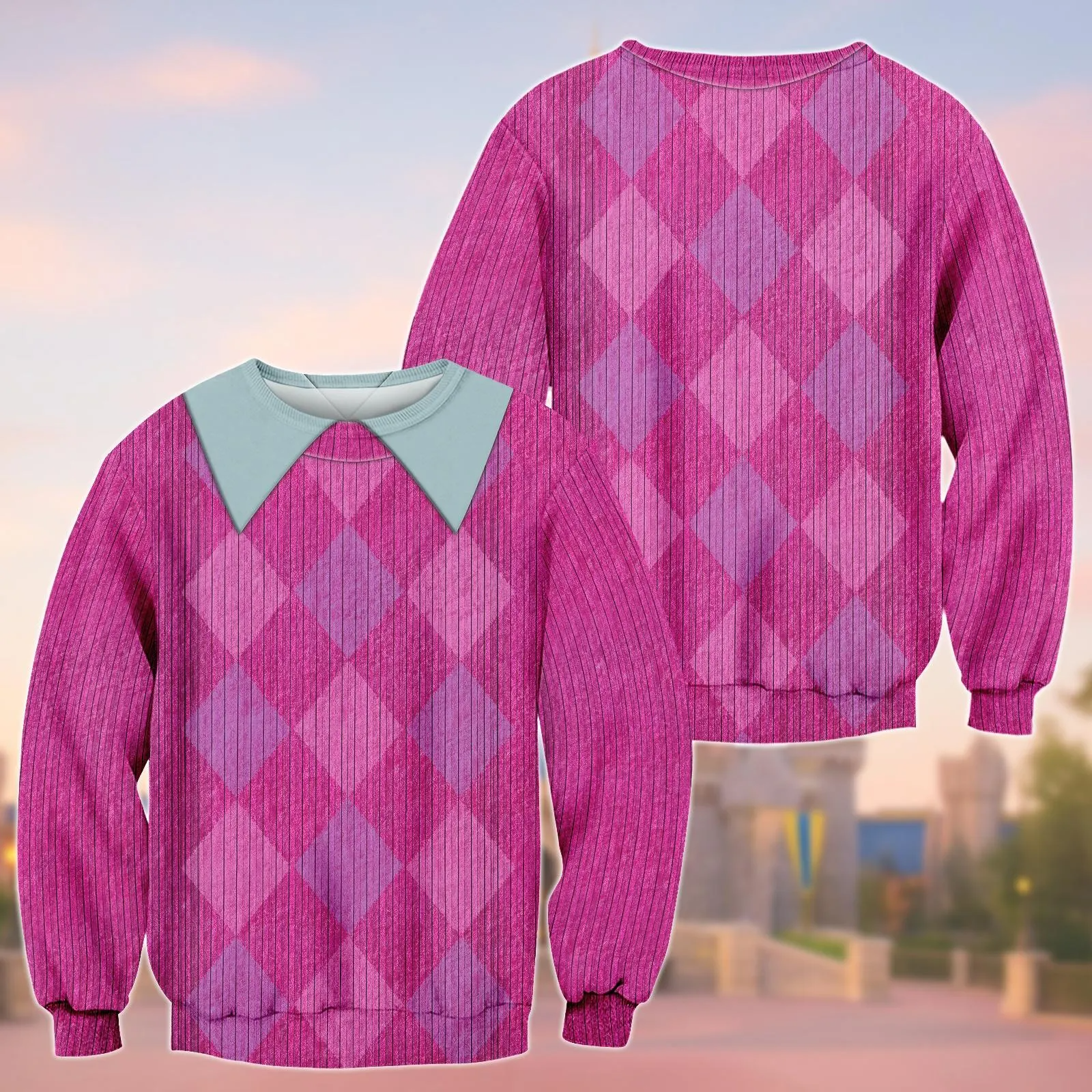 Pink Argyle Halloween Costume Shirt, Retro Knit Shirt, Movie Character Costume, Funny Halloween Costume