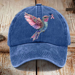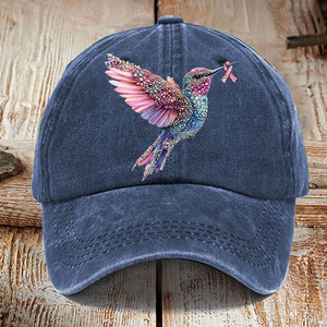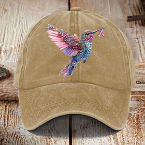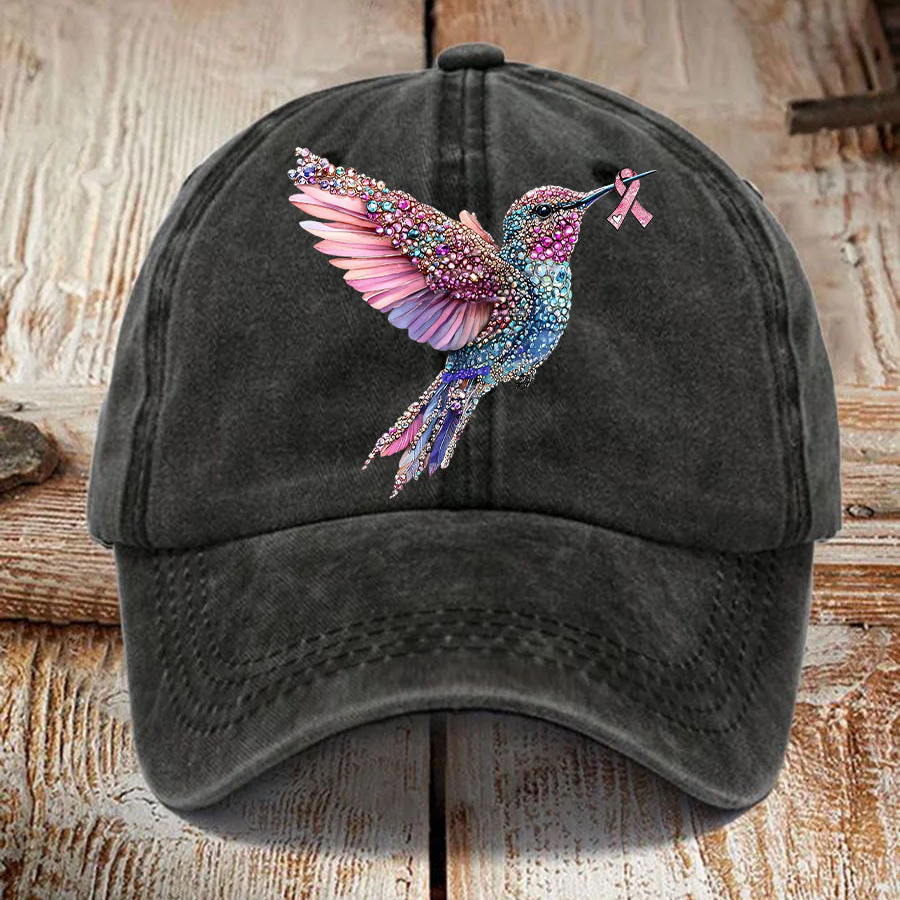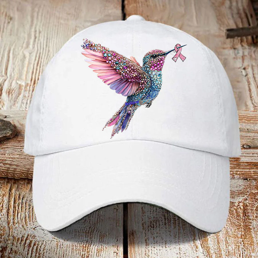 Pink Ribbon Breast Cancer Humingbird Hat, Breast Cancer Awareness Cap, Vintage Baseball Cap, Printed Cap