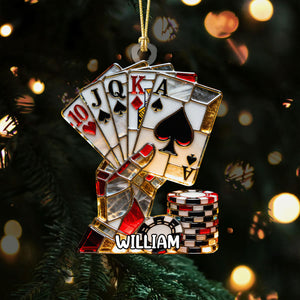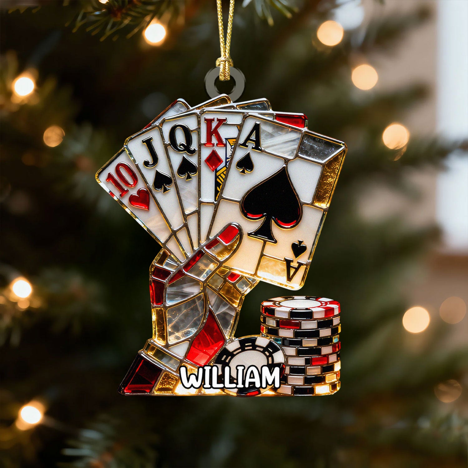 Poker Player Stained Glass Crystal Effect Acrylic Ornament, Poker Elements Unique Christmas Ornament