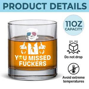 President Trump You Missed Whiskey Glass, Trump2024 Funny Glassware