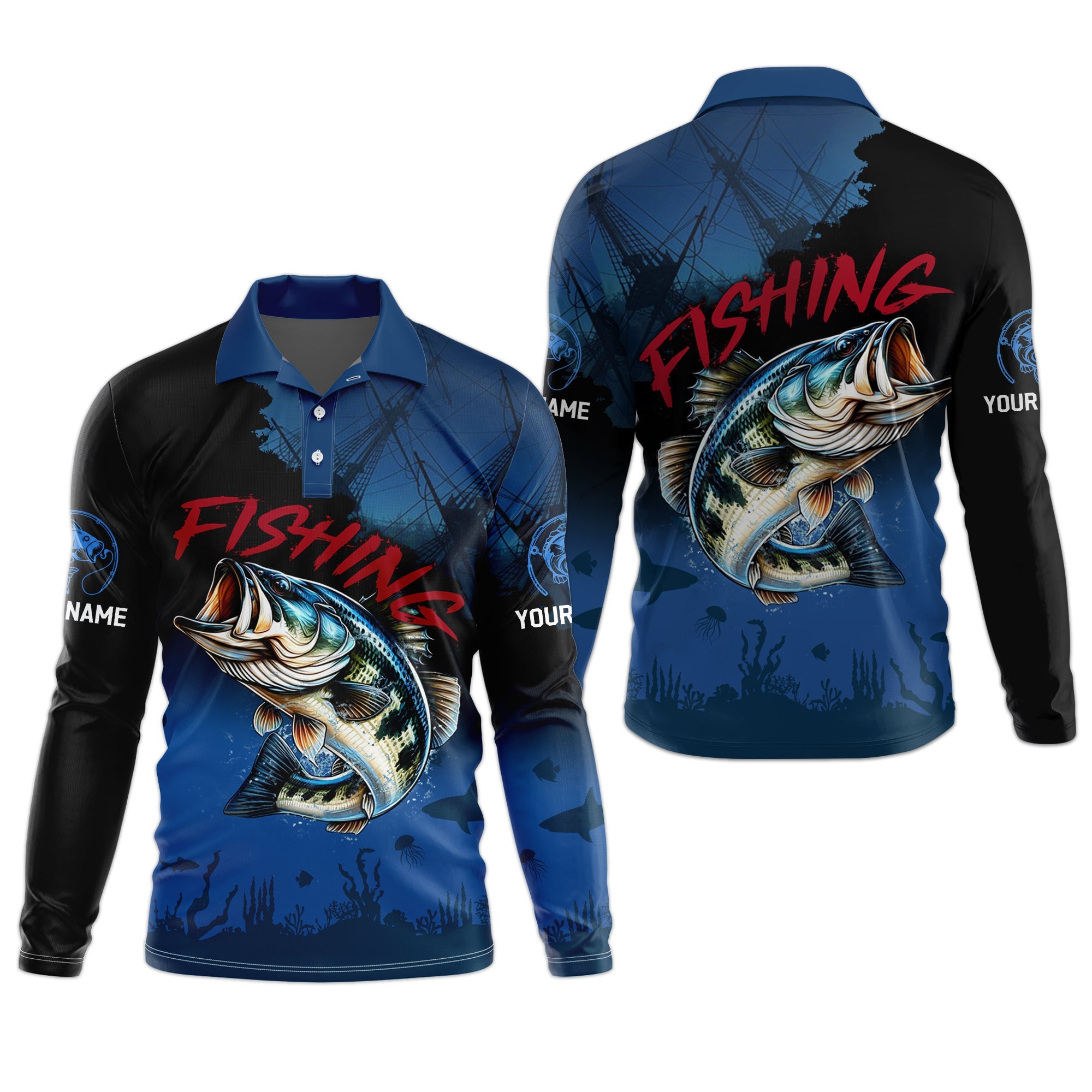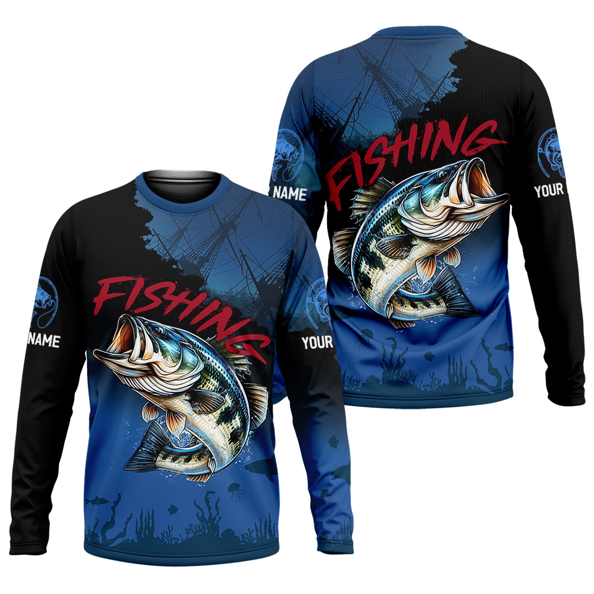 Pro Bass Fisherman, UPF Fishing Shirts, Custom Fishing Shirt, Men Long Sleeve Shirt