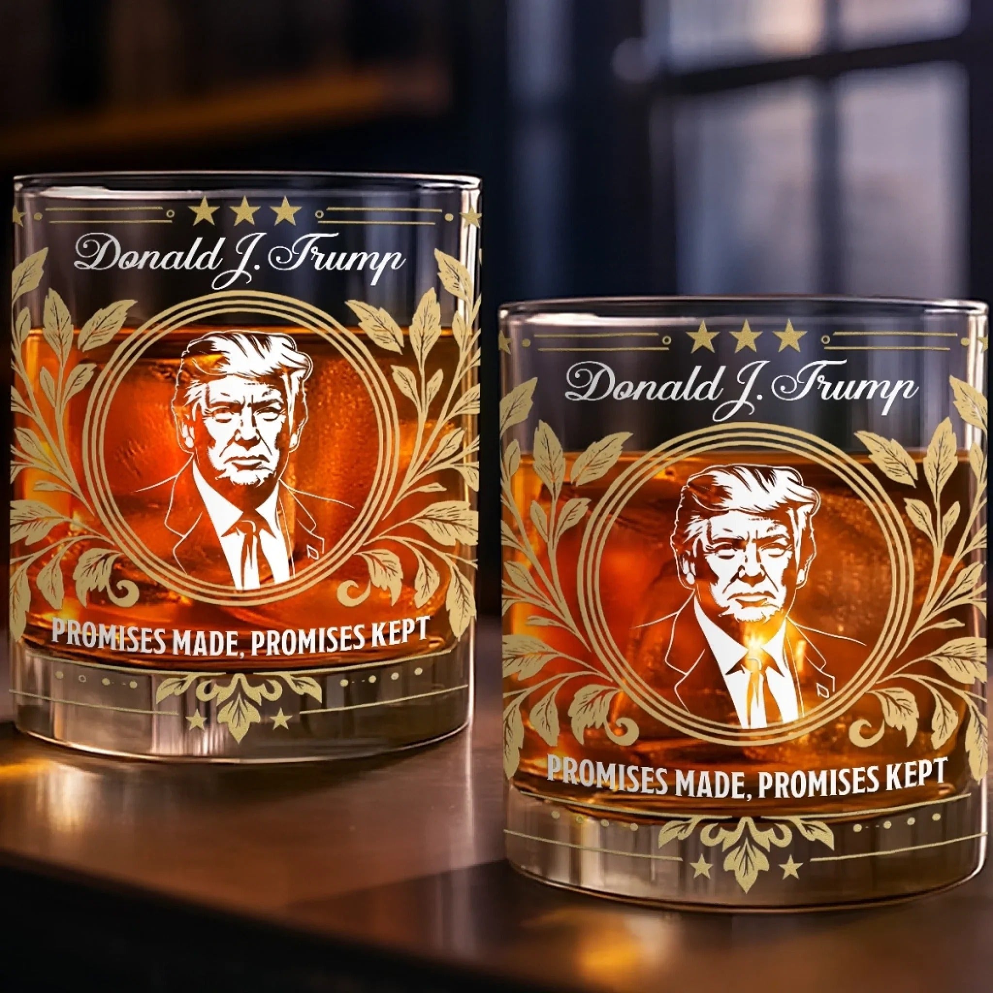 Promises Made Promises Kept - President Trump 11oz Whiskey Glass - Luxury Whiskey Glass