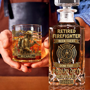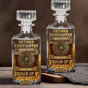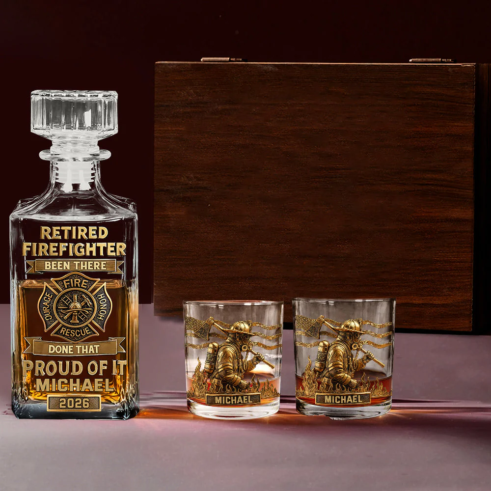 Proud Retired Firefighter Whiskey Decanter Set, Luxury Whiskey Glass, Firefighter Retirement Gift