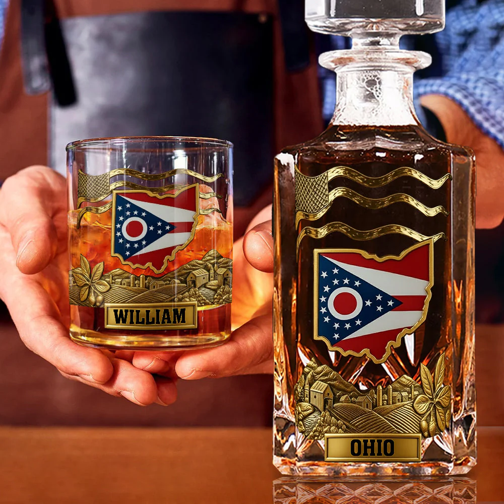 Strong Ohio States of America Whiskey Decanter Set, Patriot Gift, Luxury Whiskey Glass, Whiskey Decanter Set