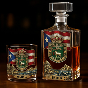 Puerto Rico Coat Of Arms Whiskey Decanter Set, Personalized Whiskey Glasses, Luxury Whiskey Glass, Man Cave Gift