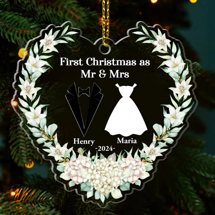First Christmas as Mr & Mrs Acrylic Ornament, Personalized Christmas Gift For Couple