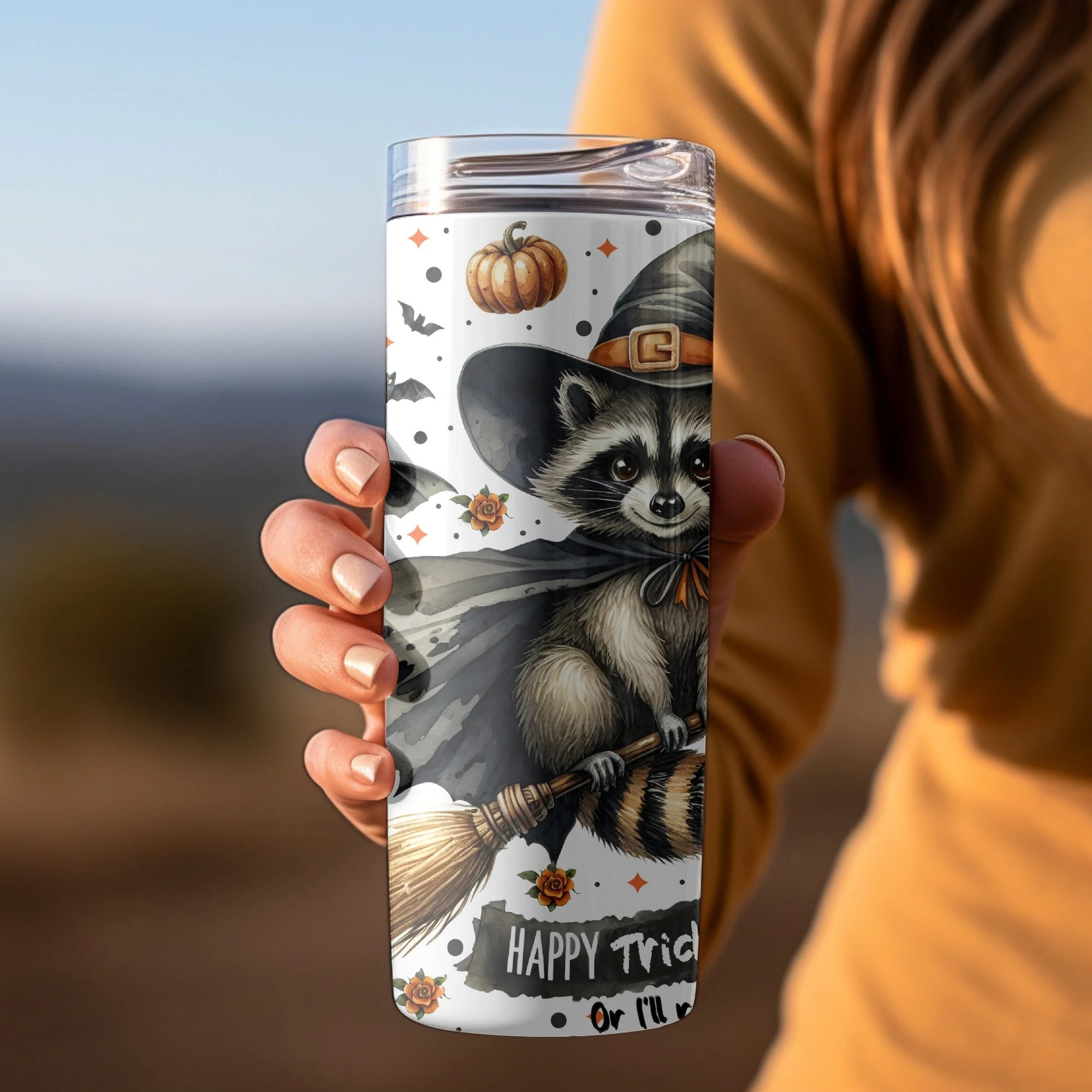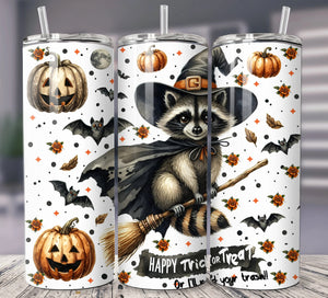 Raccoon Halloween 20oz 30oz Tumbler, Cute Raccoon Witch Costume Tumbler, Halloween Gifts