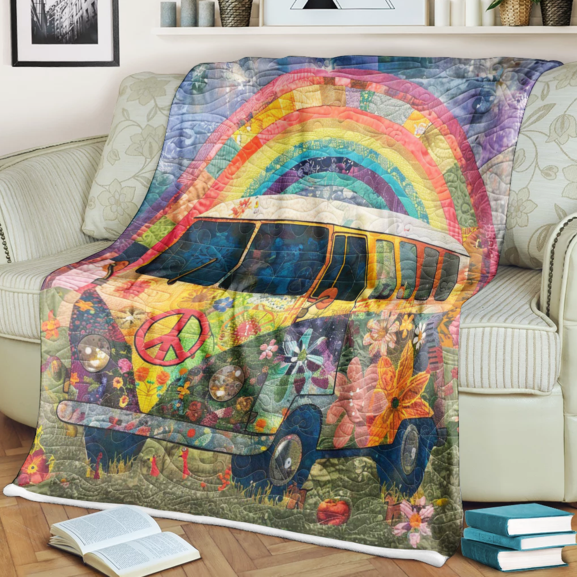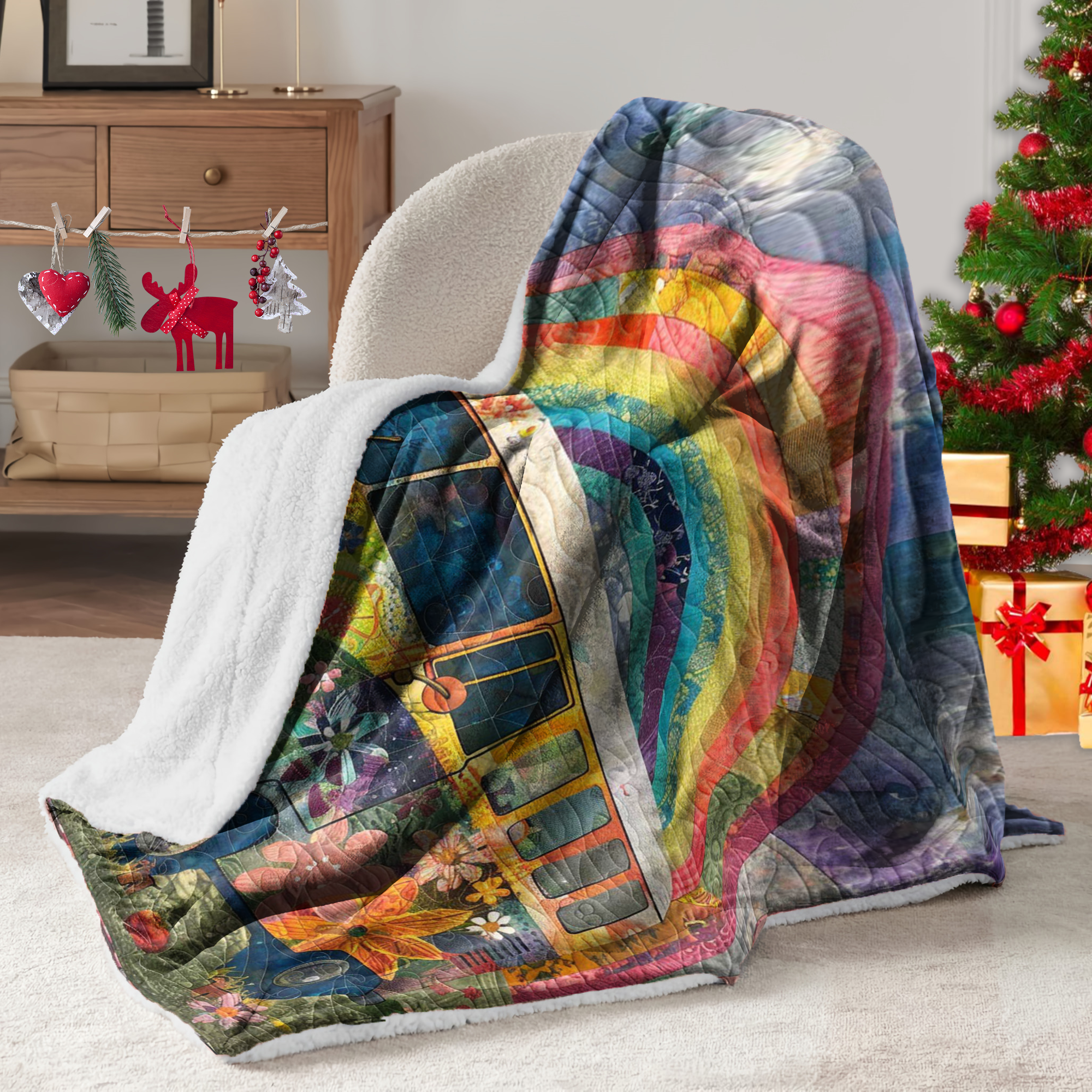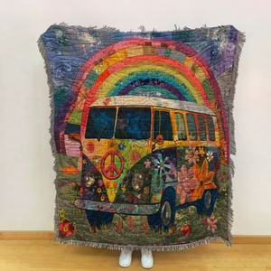 Rainbow Campervan Blanket, Gift For Travelers, Outdoor Gifts, Bedroom Decor