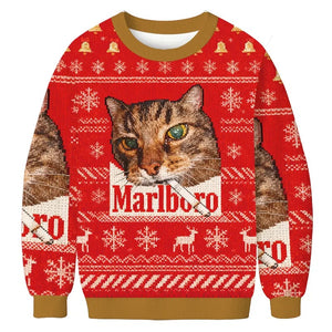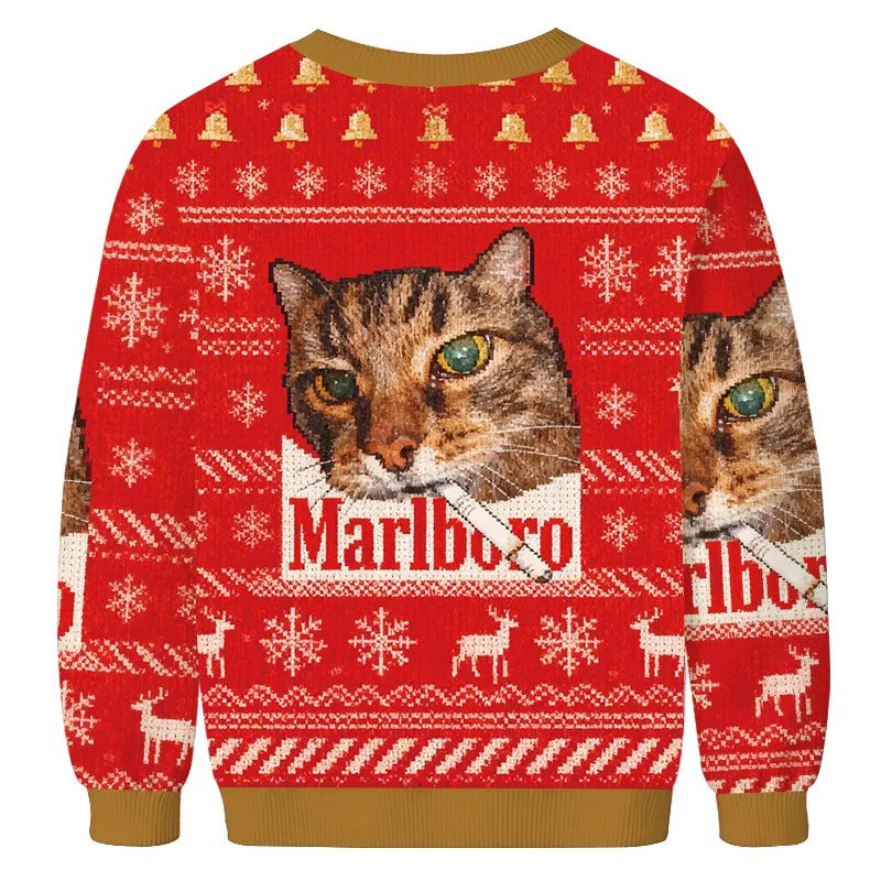 Red Funny Smoking Cat Ugly Sweater, Gift Ideas For Cat Lovers, Christmas Ugly Sweatshirt
