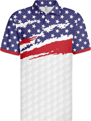 Red, White and Blue American Flag Patriotic Golf Polo Shirts, Golf Gift For Men, Golf Shirts For Men