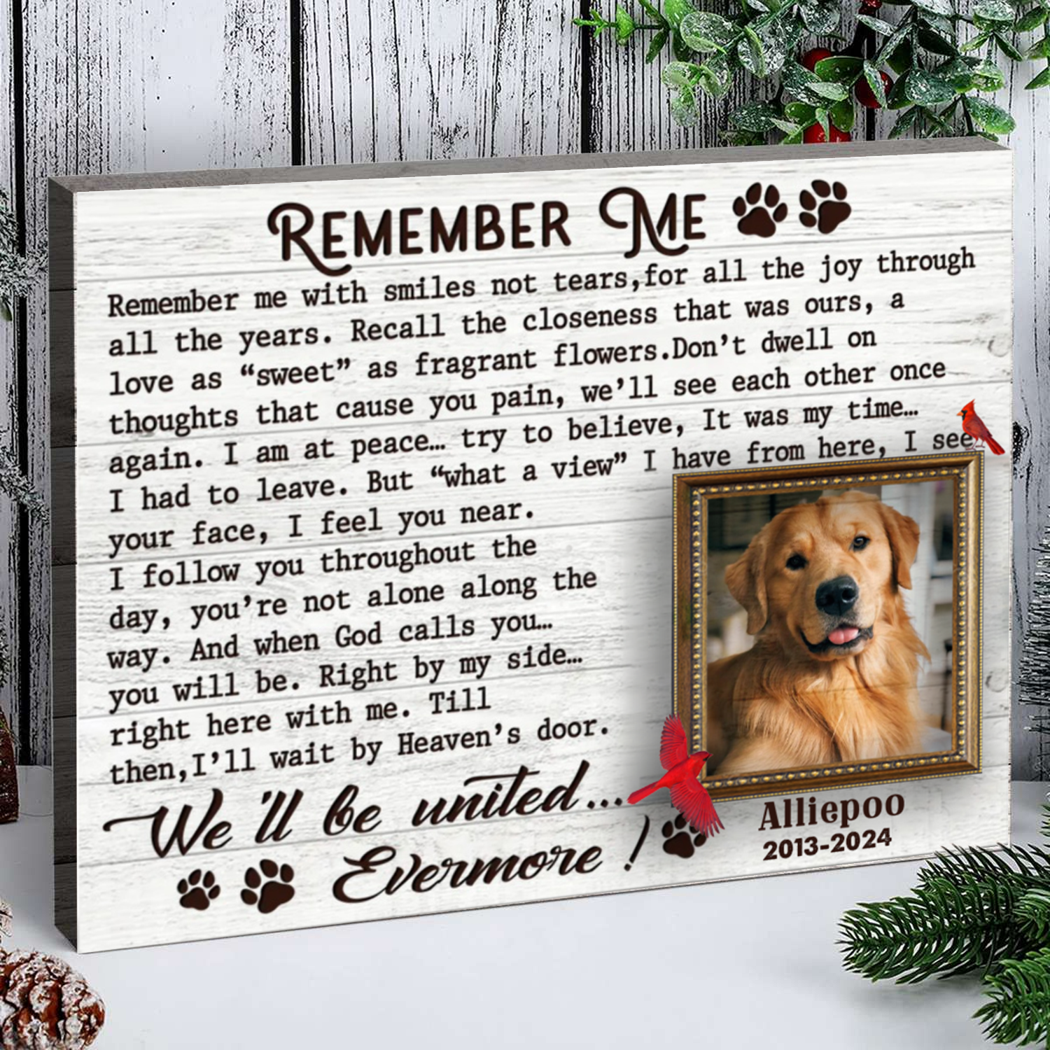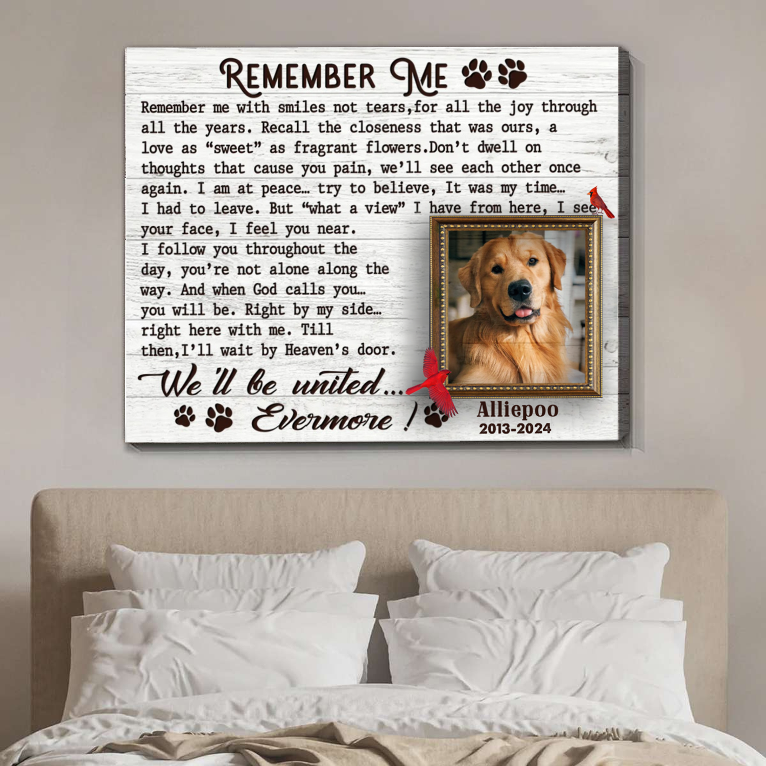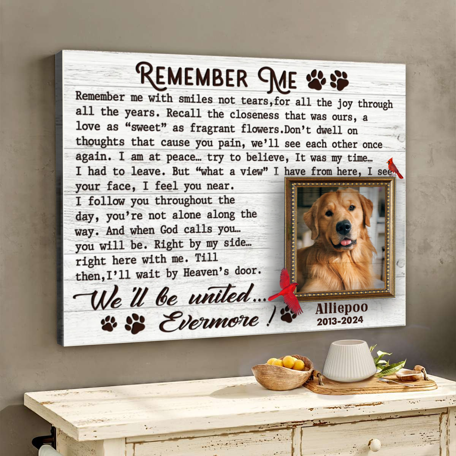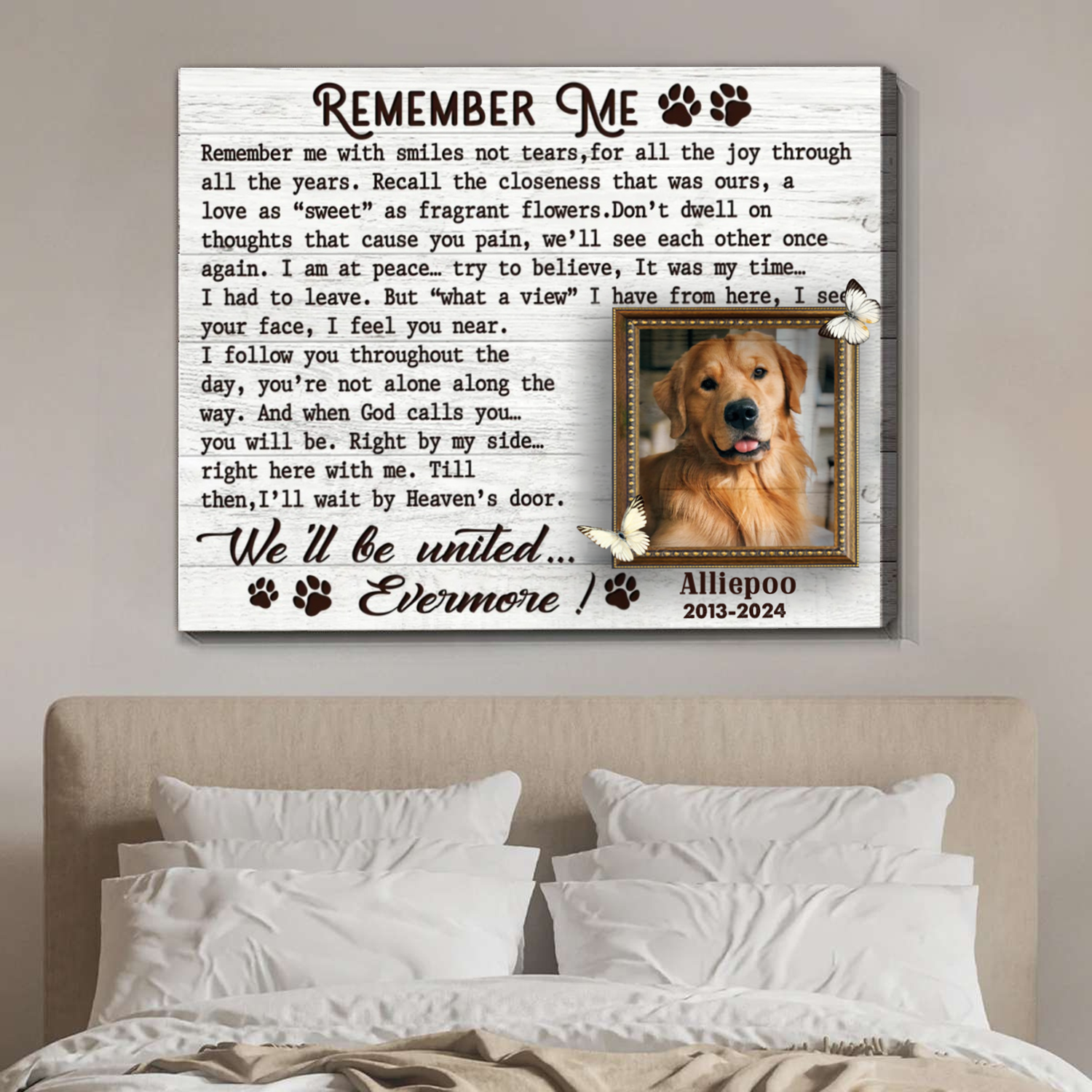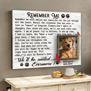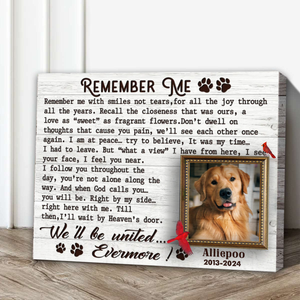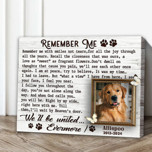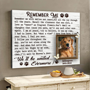 Remember Me Custom Photo Memorial Canvas Wall Art, Gifts For Loss Of Dog