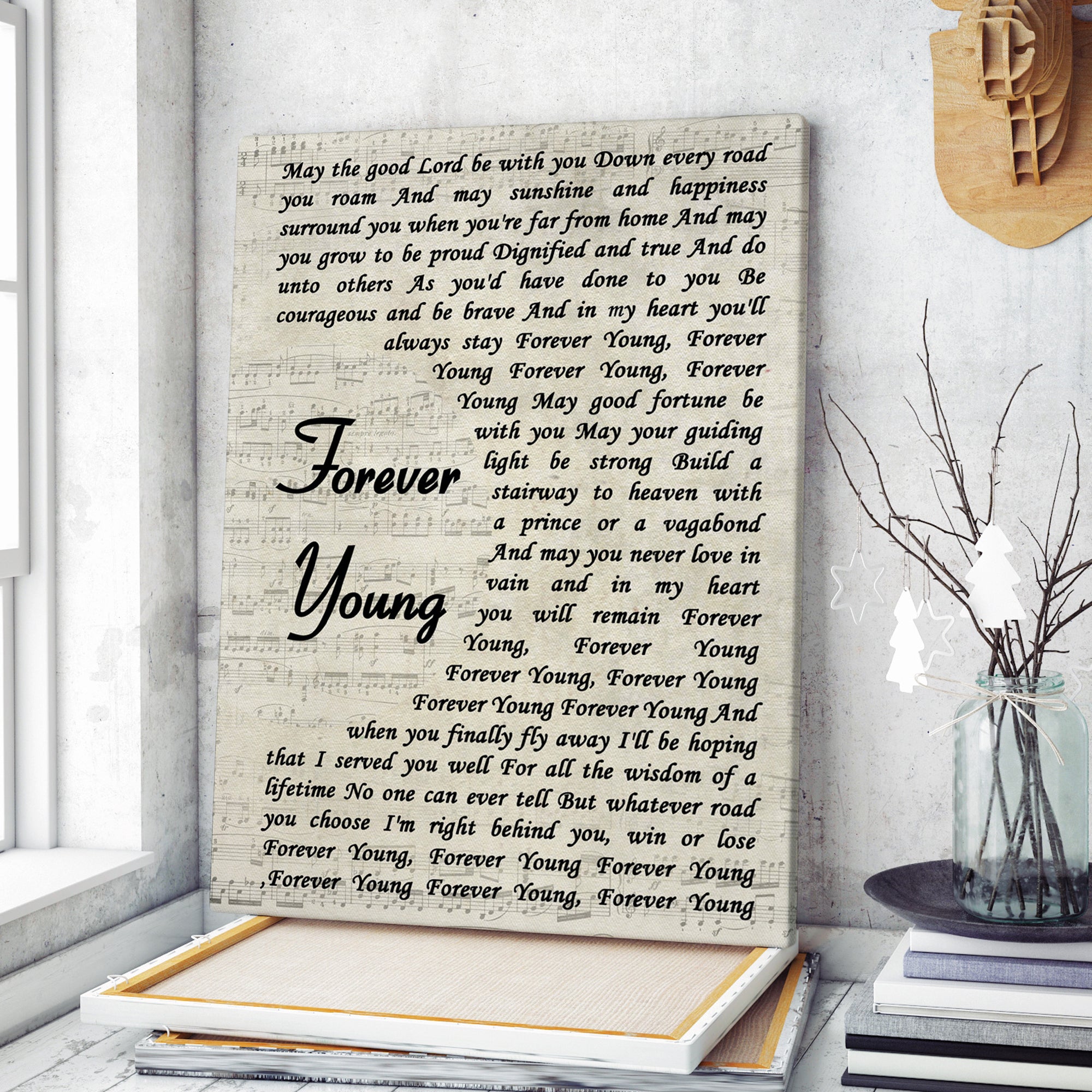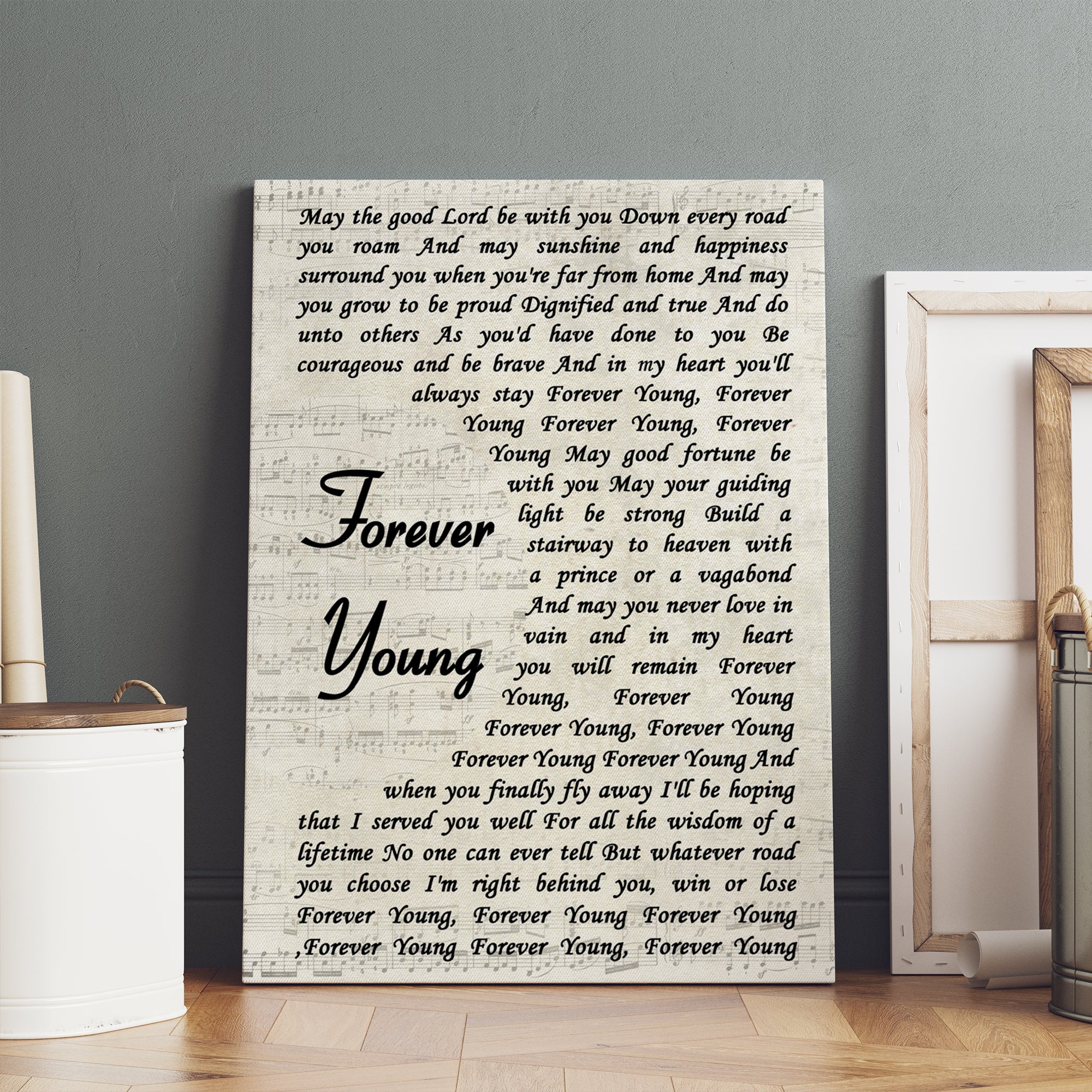 Rod Stewart Forever Young Vintage Script Song Lyric Music Wall Art Print Lyrics Poster Wrapped Canvas Frame Gift