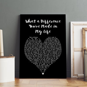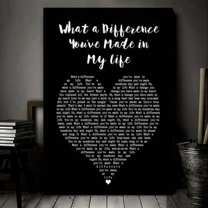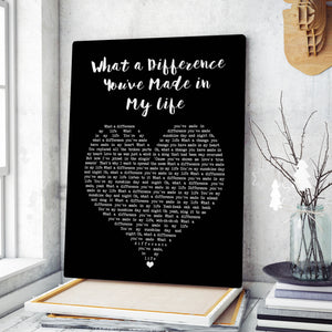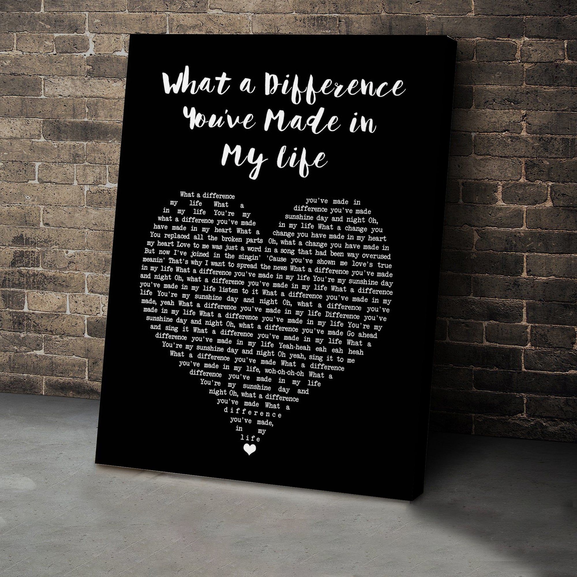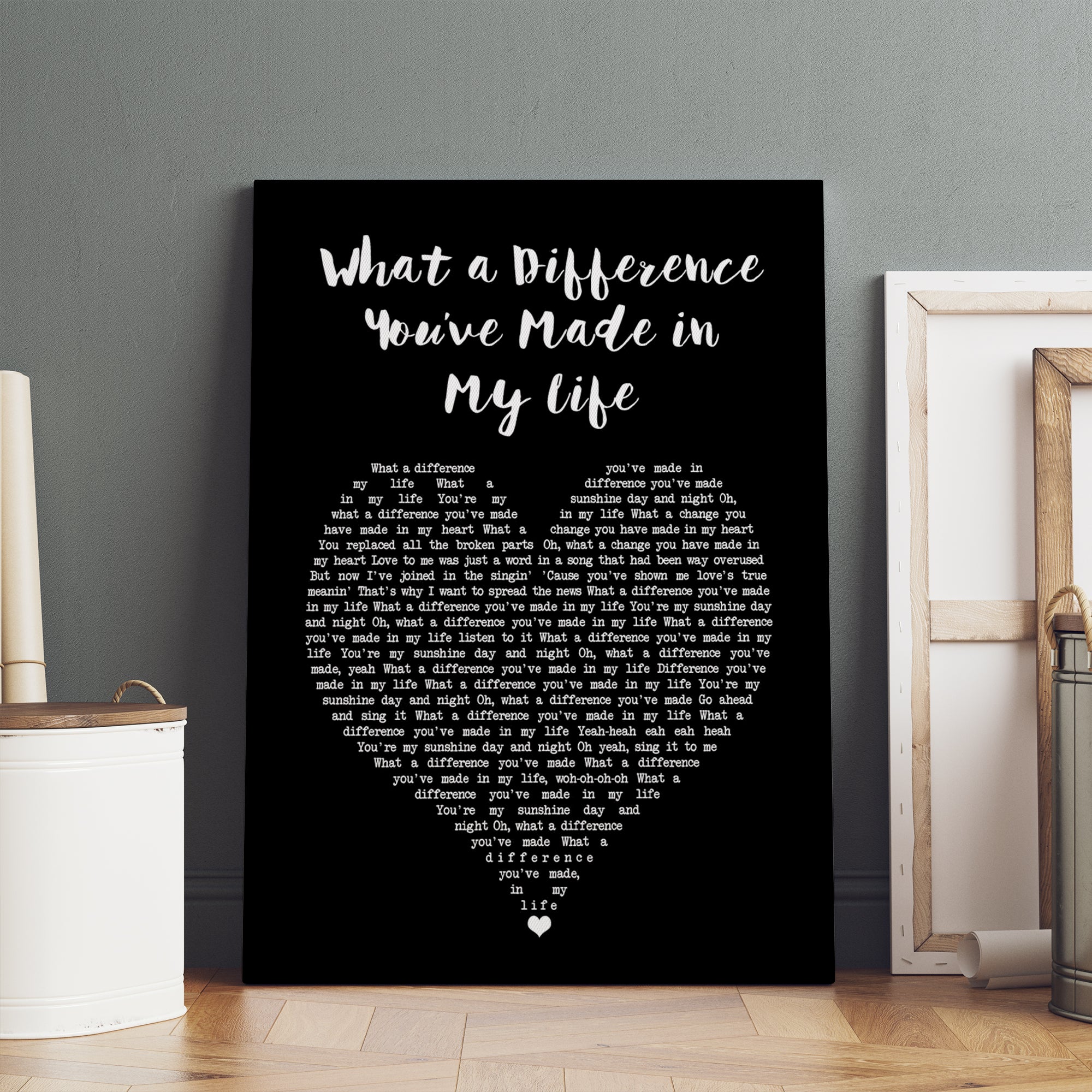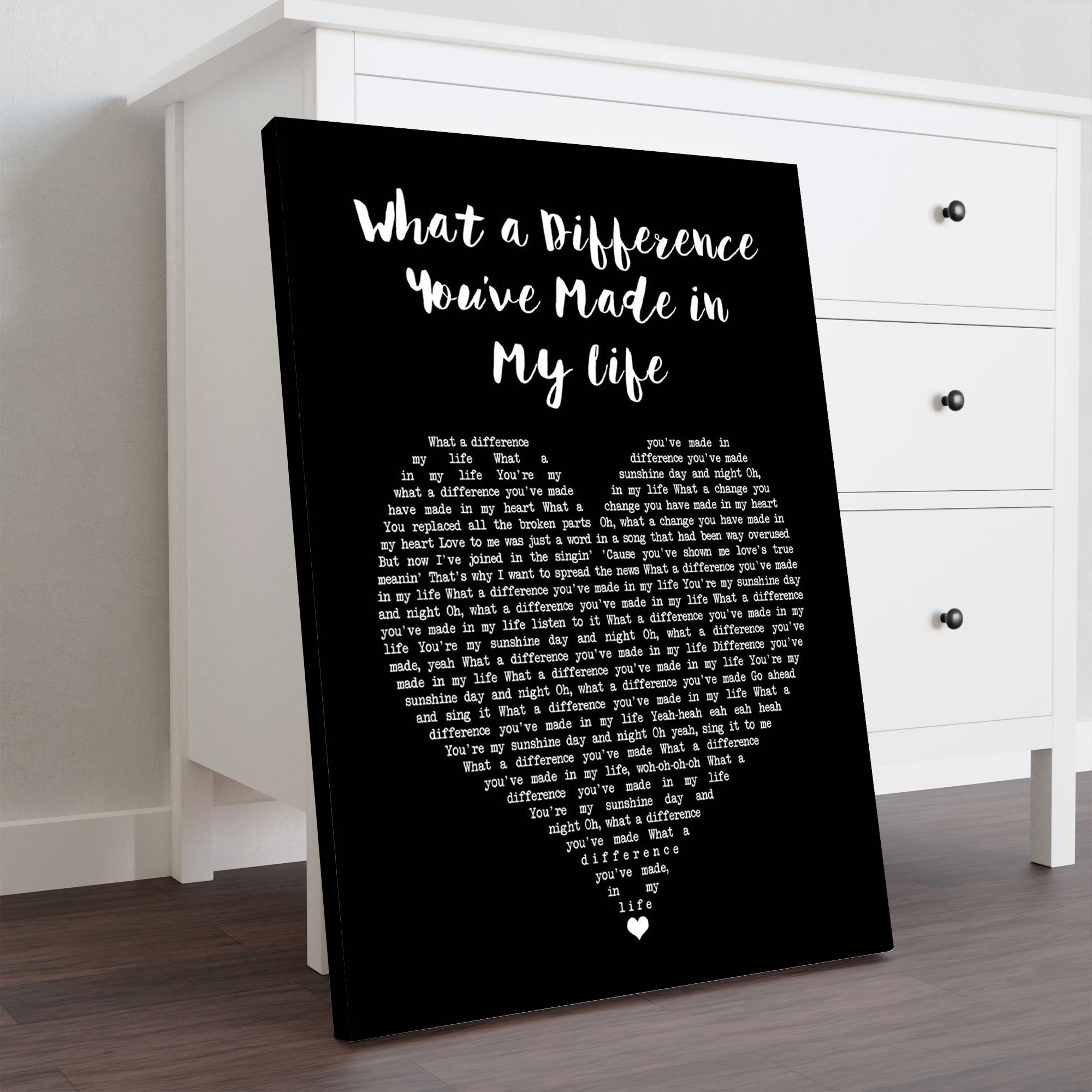 Ronnie Milsap What a Difference You?ve Made in My Life Black Heart Song Lyric Art Print Canvas Print Frames