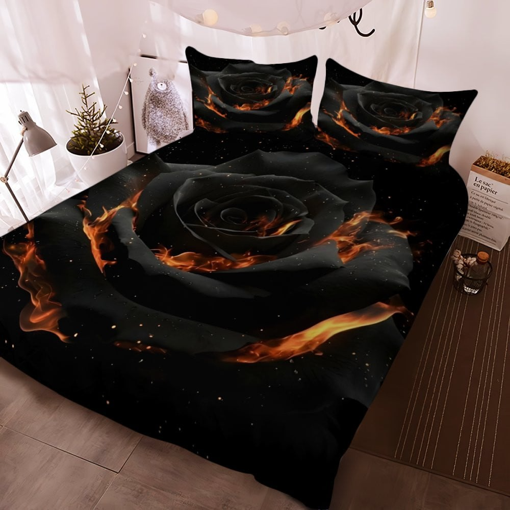 Roses On Fire Shadows on Fire Quilt Bed Set, Couple Bedding Set, Couple Valentine Gift