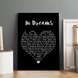 Roy Orbison In Dreams Black Heart Song Lyric Art Print Canvas Print Frames
