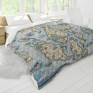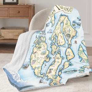 Discover the serene beauty of the Pacific Northwest with our San Juan Islands Map Blanket, a cozy and charming gift for nature lovers, travelers, and outdoor enthusiasts. This blanket features a meticulously crafted map of the San Juan Islands, capturing the scenic charm and unique layout of this beloved archipelago. From Orcas Island to San Juan Island and beyond, each element is carefully illustrated to reflect the region's iconic locations and waterways.