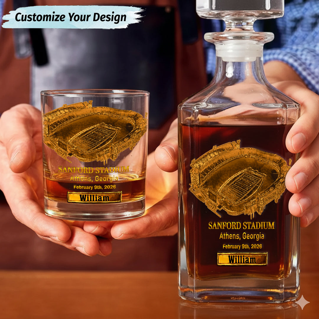 Sanford Stadium Whiskey Decanter Set, Football Stadium Whiskey Glasses, Luxury Whiskey Glass