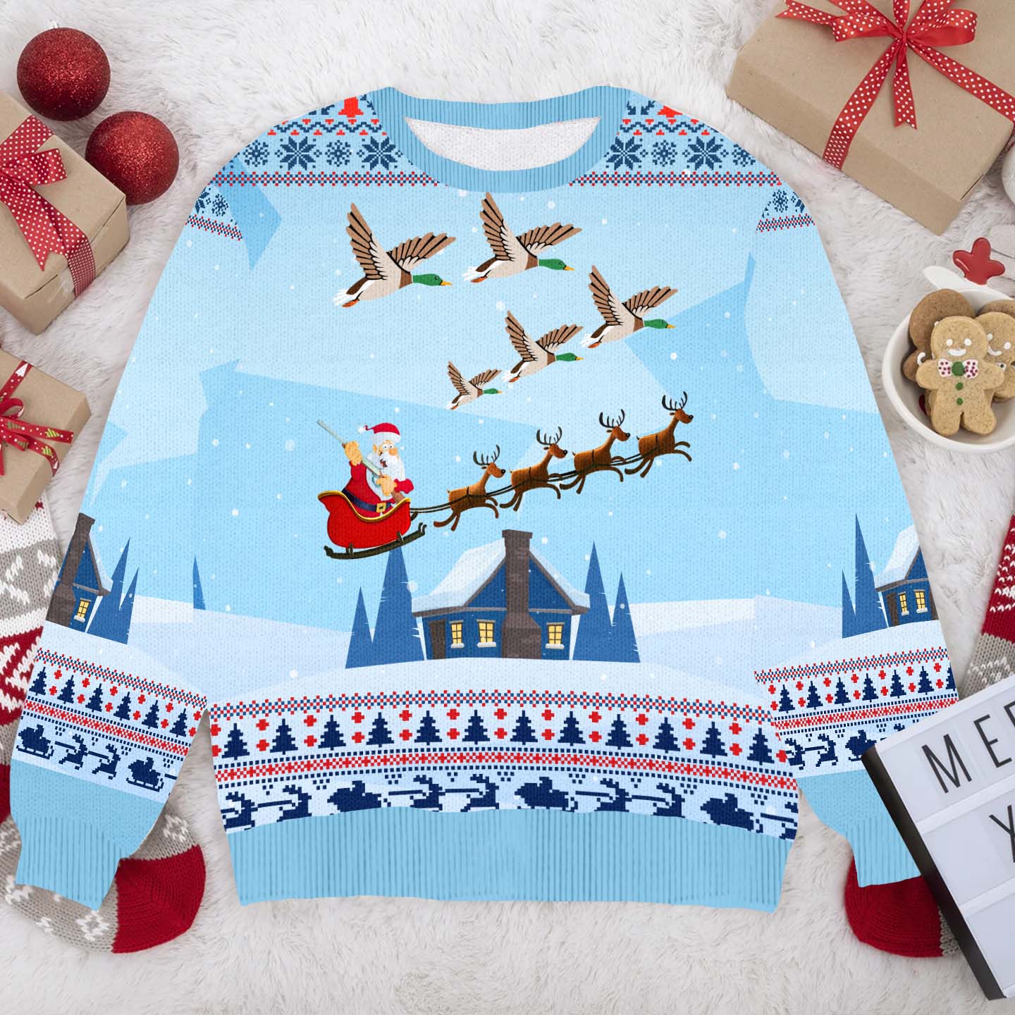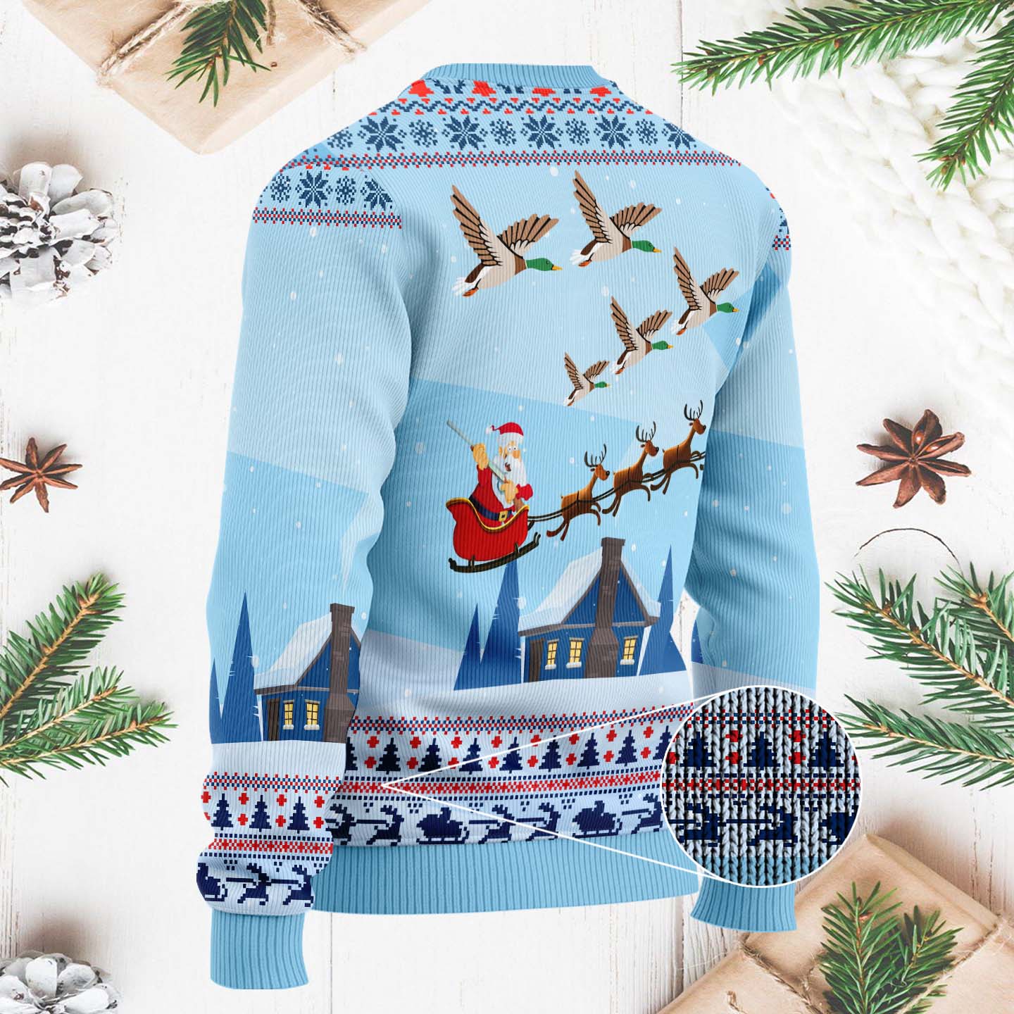 Santa Duck Hunting Funny Christmas Ugly Sweater, Ugly Christmas Sweater