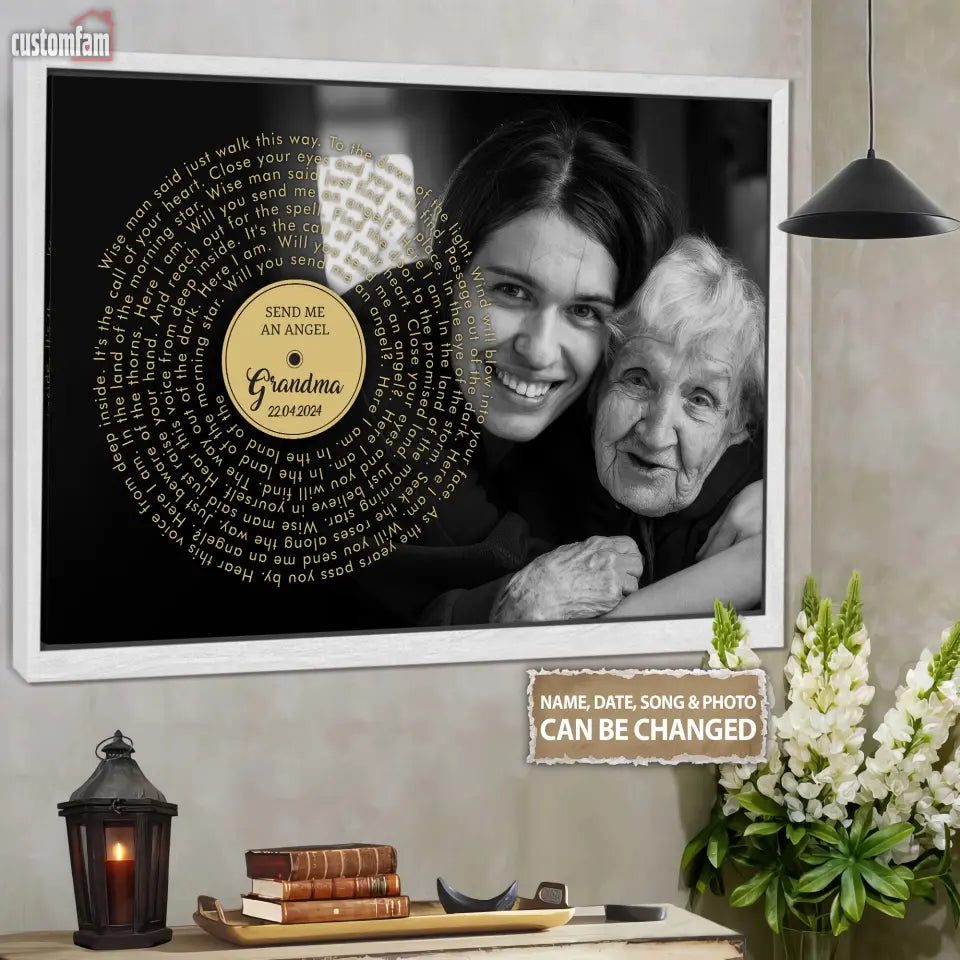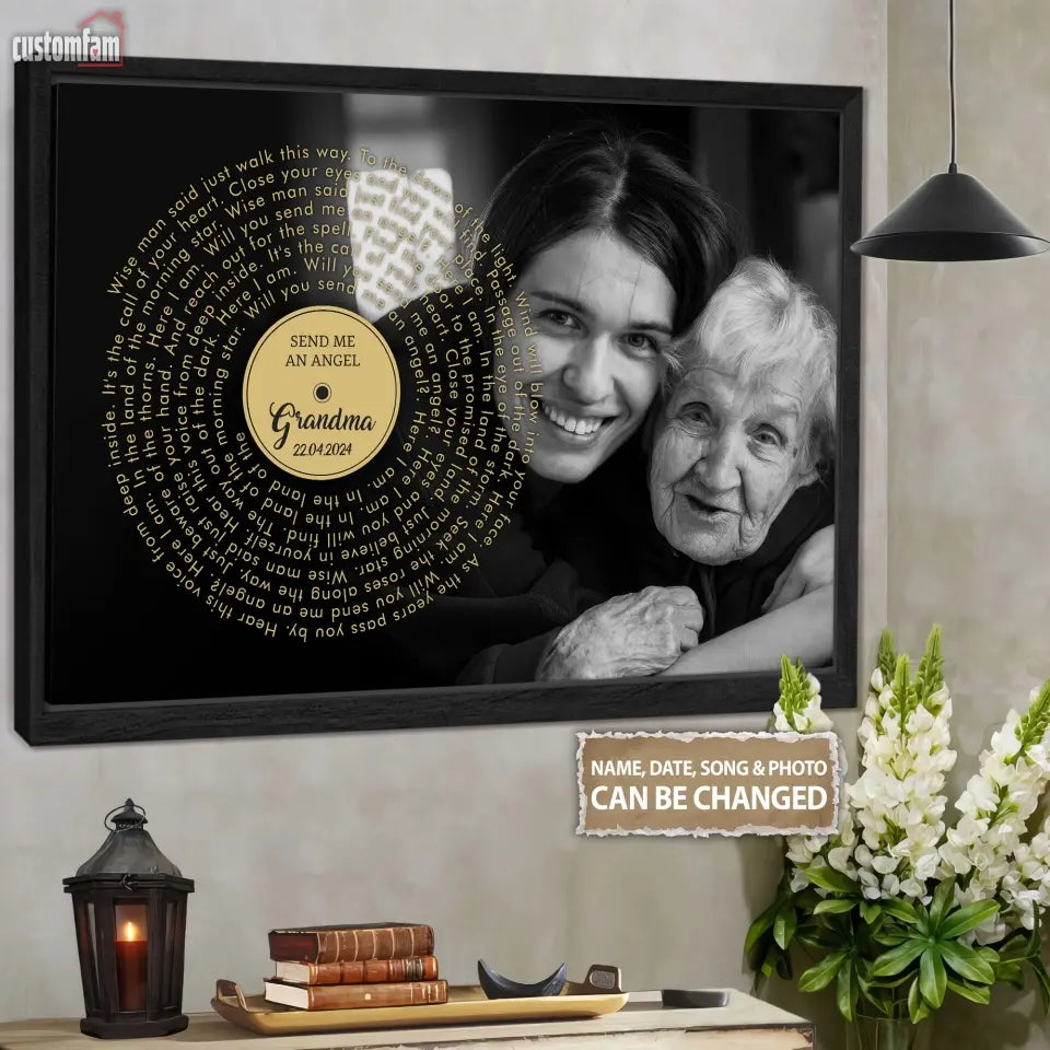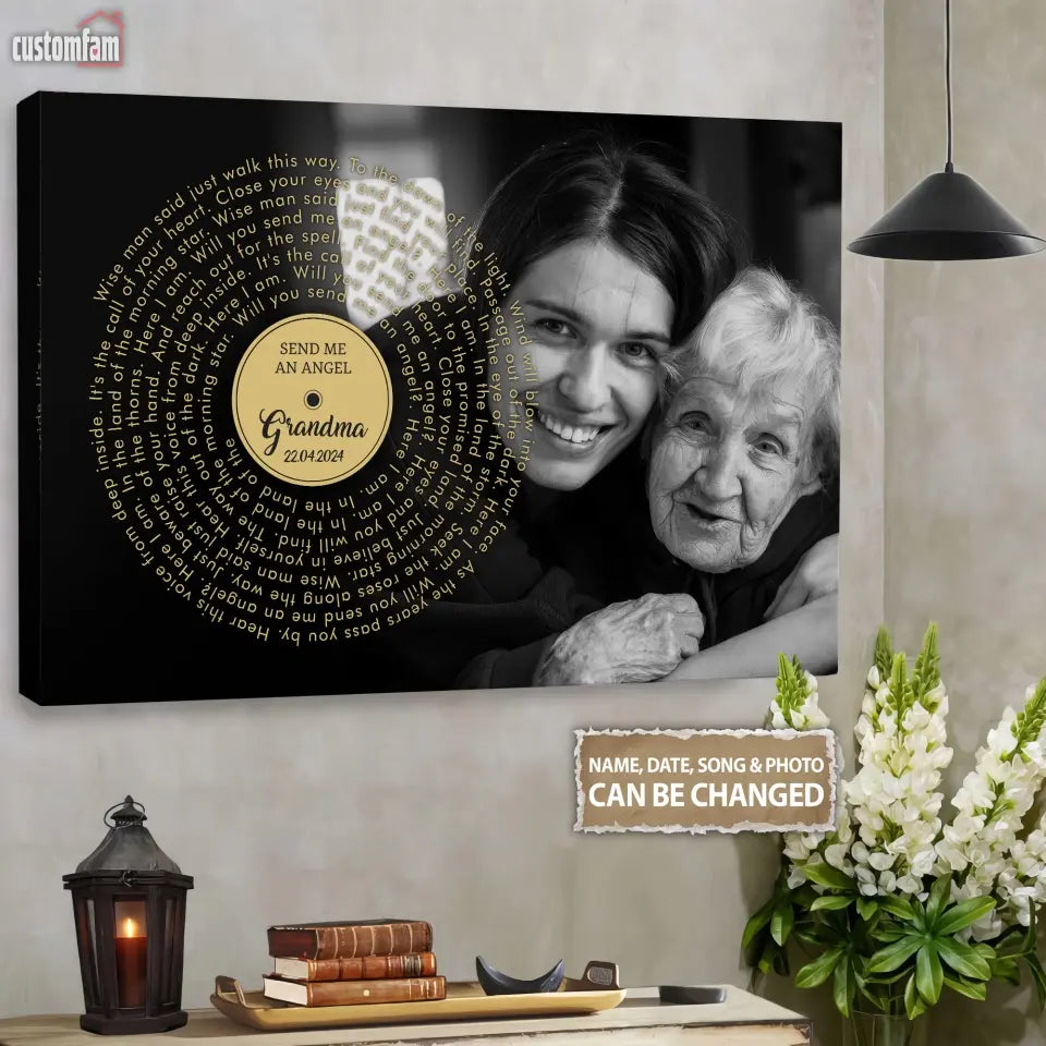 Send Me An Angel Personalized Canvas Wall Art, Custom Photo Memorial Framed Canvas, Any Song Lyric On Canvas, Family Gift