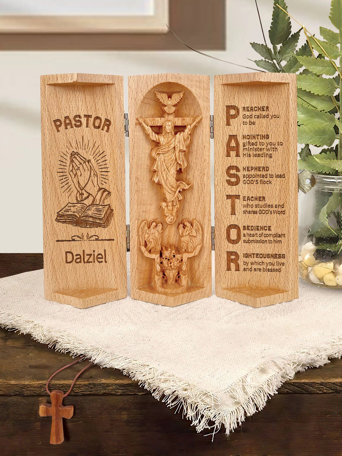 Serve Faithfully, Personalized Openable Wooden Cylinder Sculpture of Jesus Christ, Christian Gifts