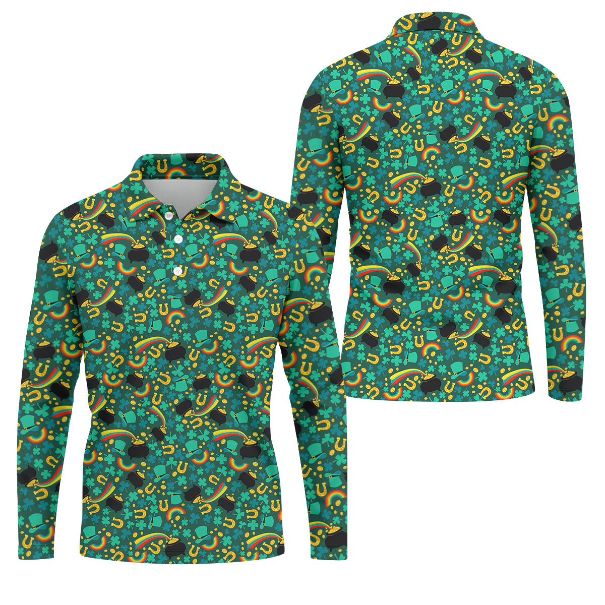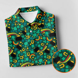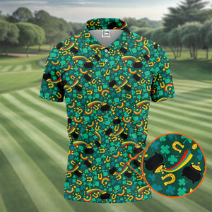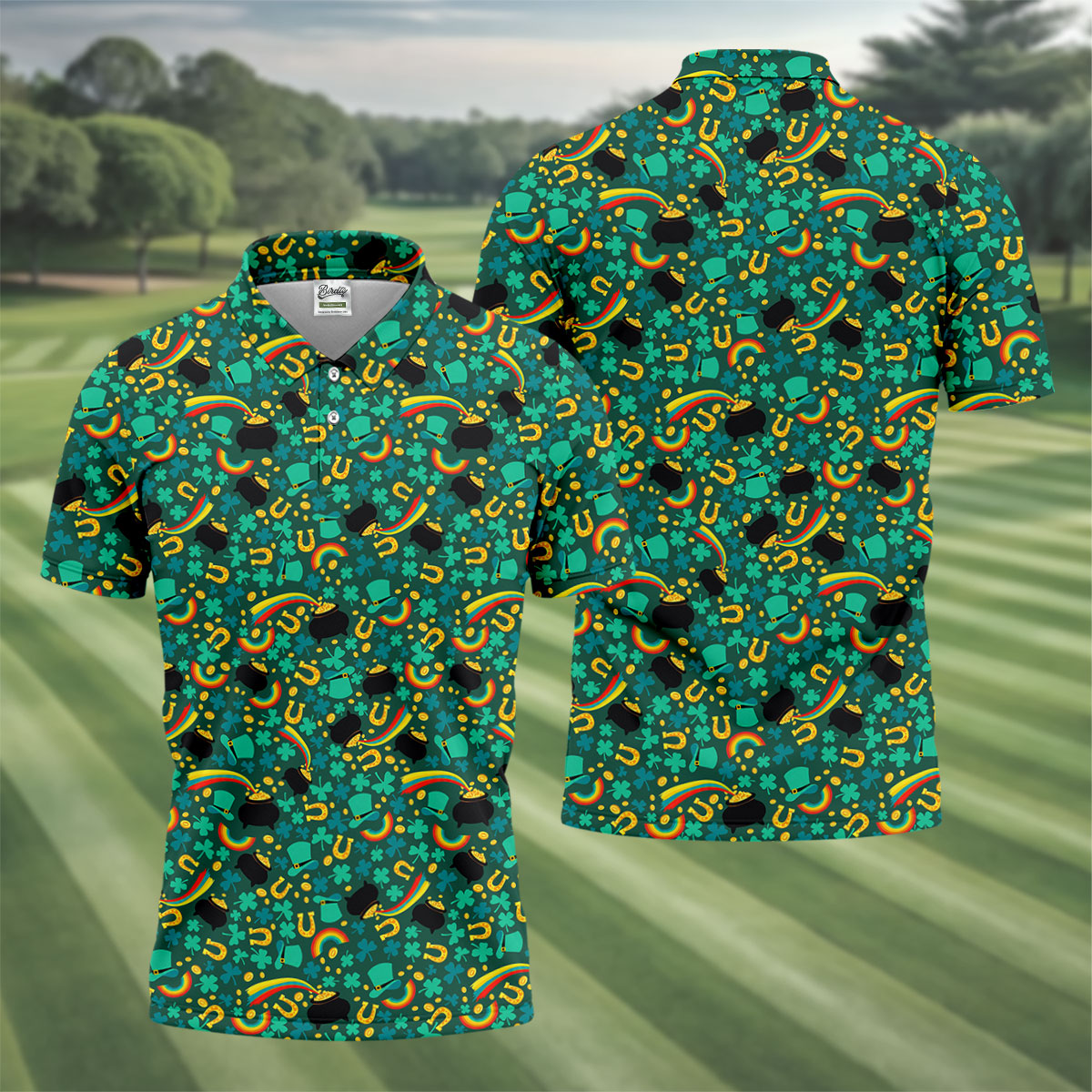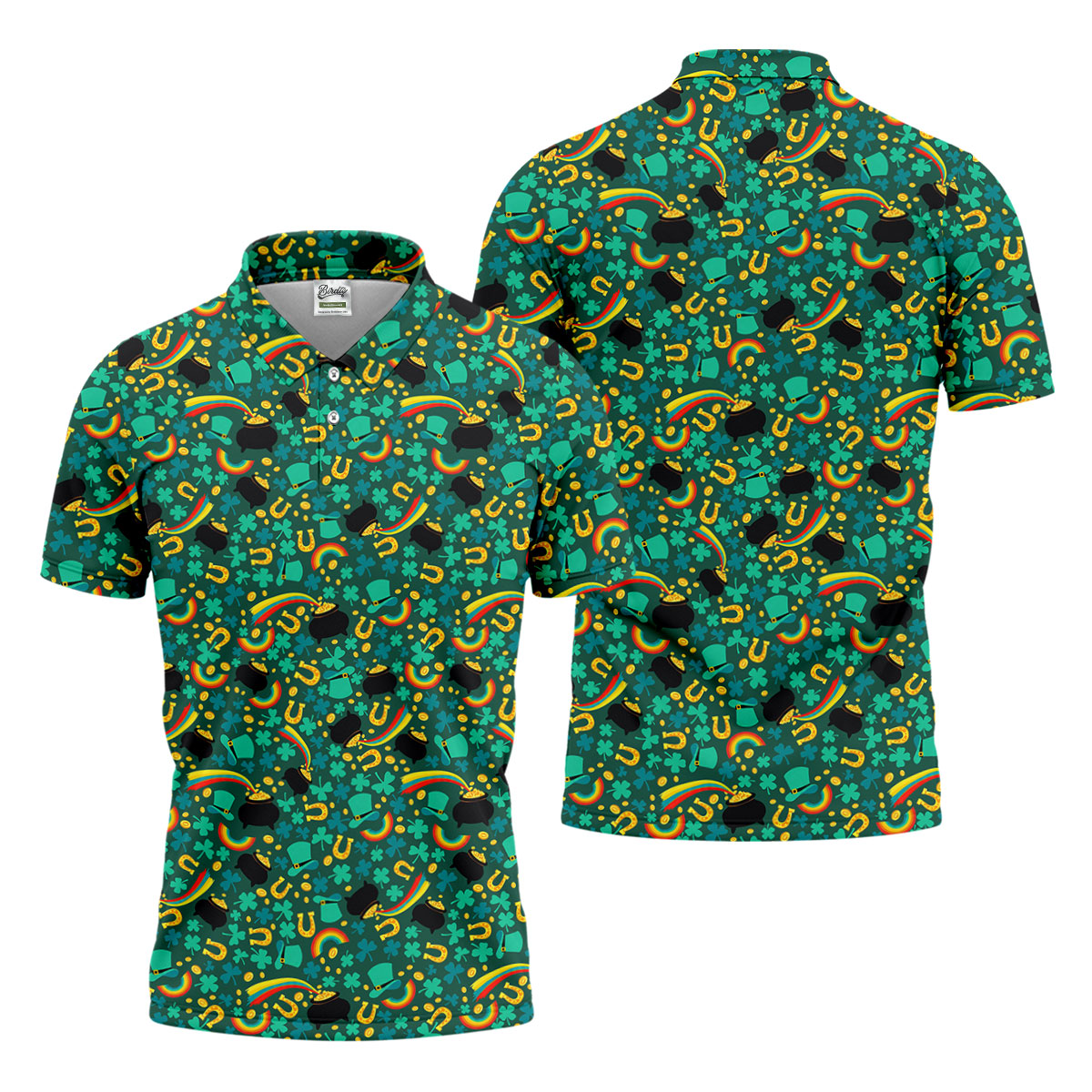 Shamrock Beer Lucky Four Leaf Clover St Patrick's Day Pot Of Gold Polo Shirts For Men, Golf Gift For Men