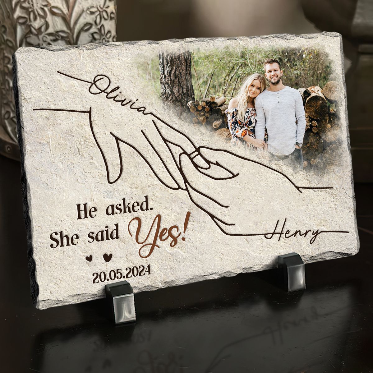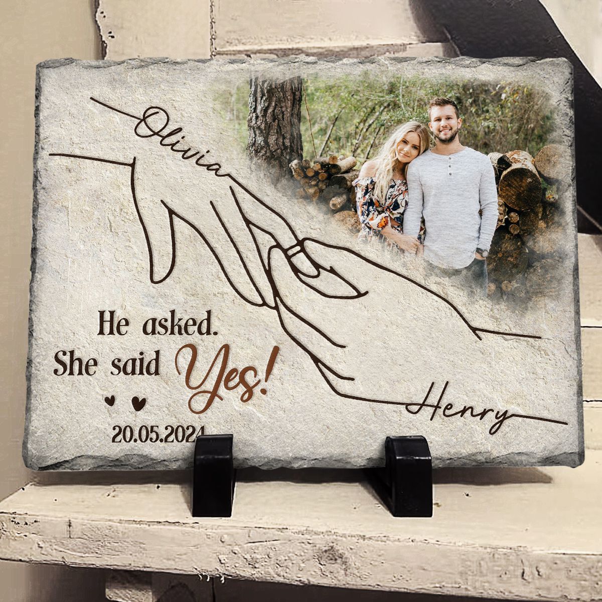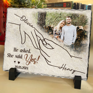 She Said Yes Personalized Rectangular Stone, Photo Slate, Anniversary Gift For Couple