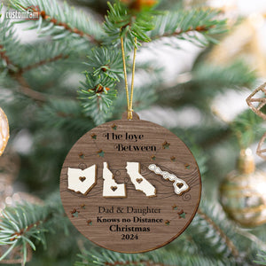 Celebrate the special bond with loved ones near or far this holiday season with our “Side By Side Or Miles Apart” Personalized State to State Ornaments. These beautifully crafted ornaments are the perfect way to symbolize the connection between two places, whether it’s between states or countries, making them a heartfelt Christmas gift for friends, family, or long-distance couples.
