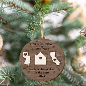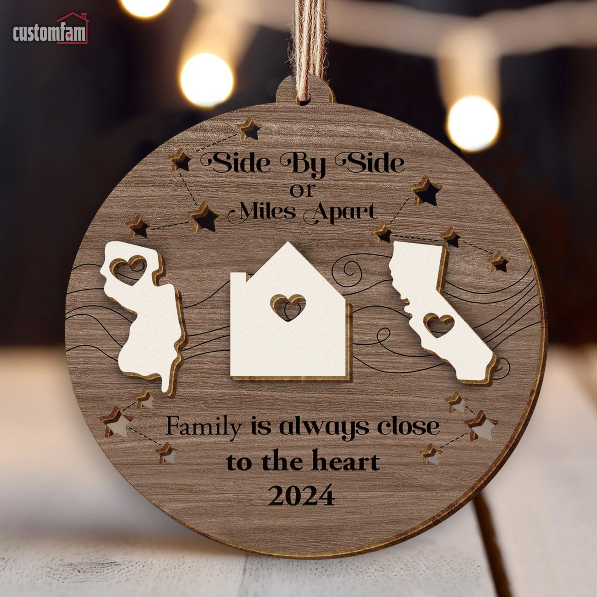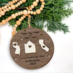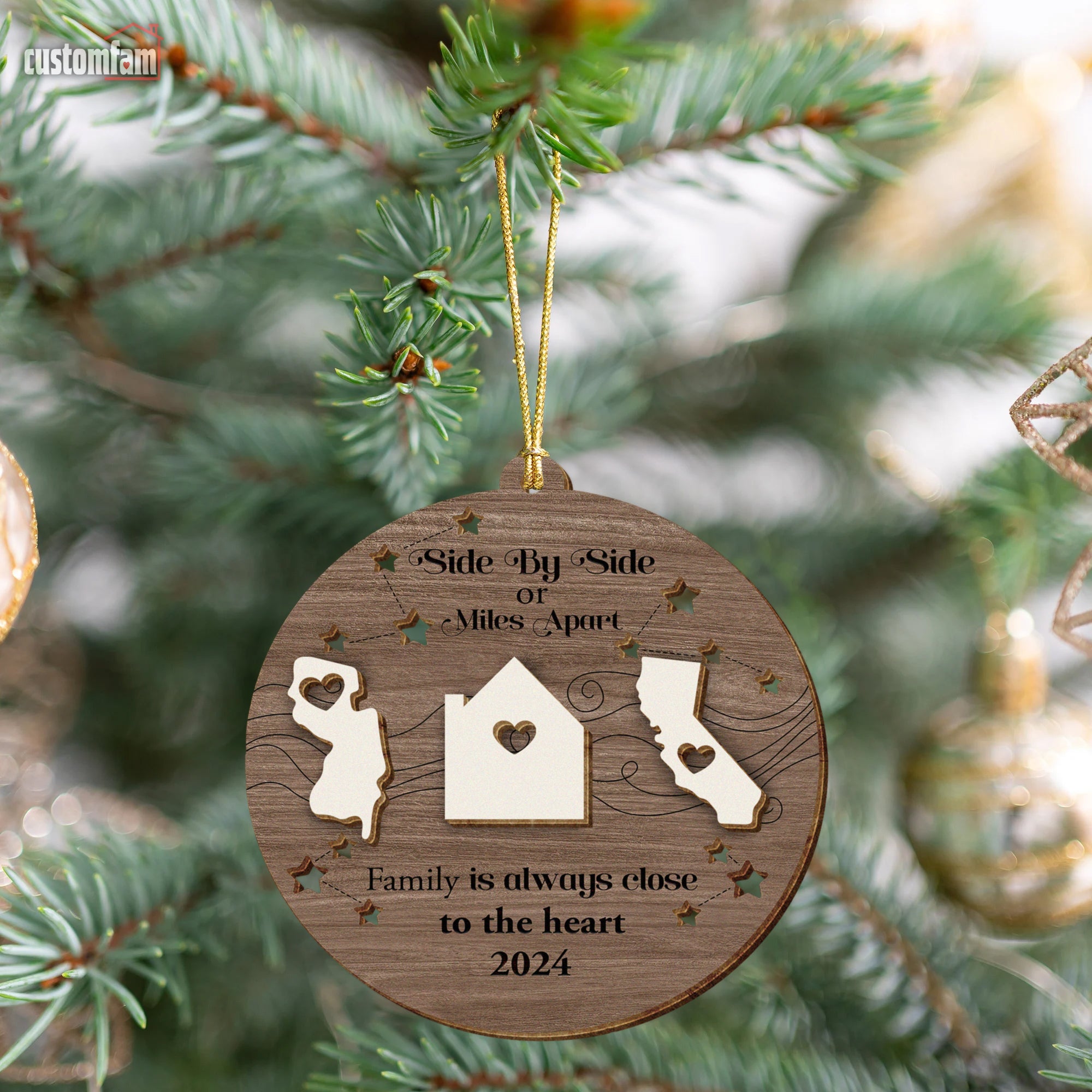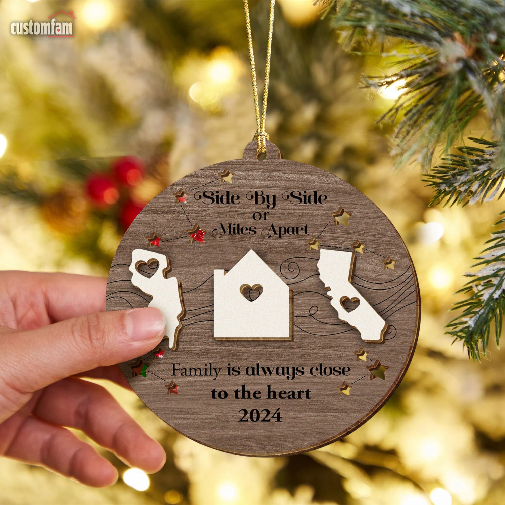 Side By Side Or Miles Apart Personalized Christmas Ornaments, Gift For Family