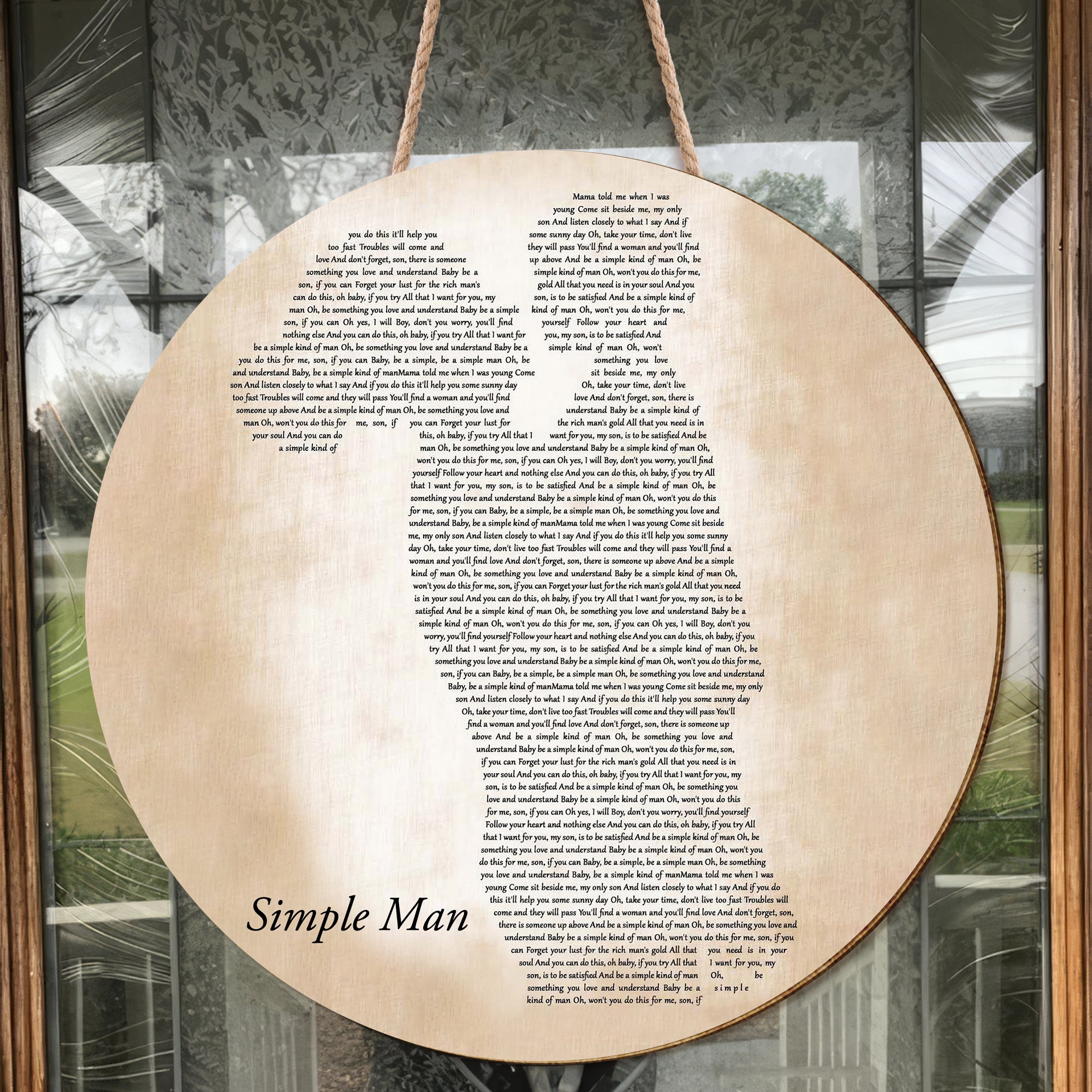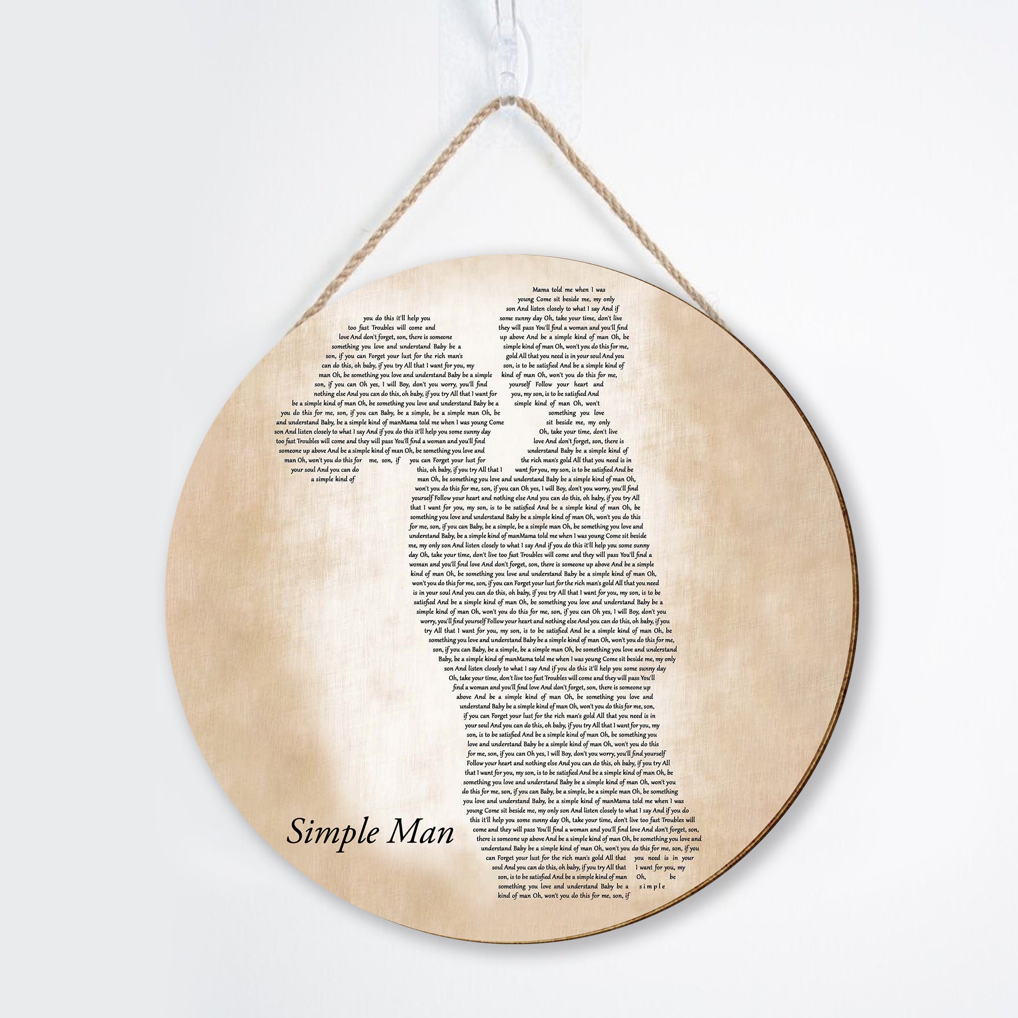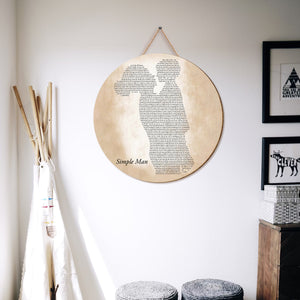 Simple Man Mother & Child Song Lyric Art Print Round Wood Sign, Wood Signs For Home