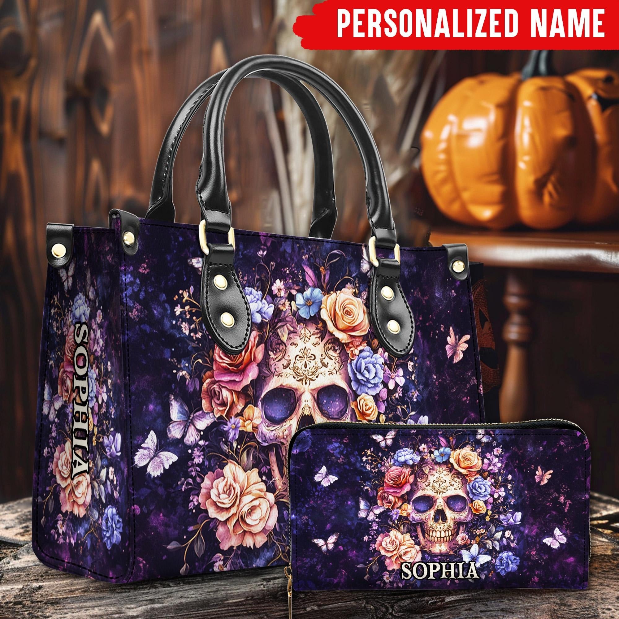 Skeleton Handbag With Wallet - Halloween Treat Bags - Leather Shoulder Bag