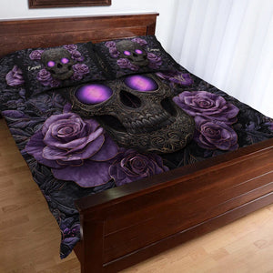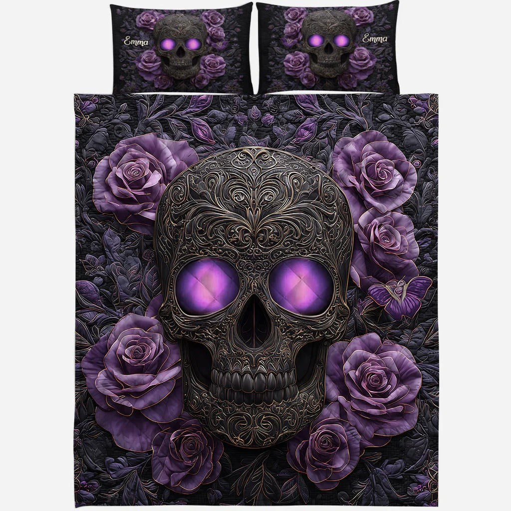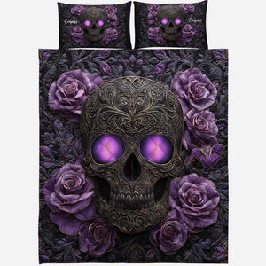 Skull And Roses, Personalized Skull Quilt Set, Couple Valentine Gift, Valentine's Day Ideas, Gift for Halloween