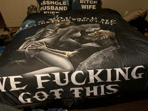 Add a bold and heartfelt touch to your bedroom with the Skull Couple "We Got This" Quilt Bed Set. This striking bedding set symbolizes unbreakable love and unity, making it a unique and meaningful choice for couples who share a powerful bond.