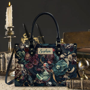Skull & Flower - Personalized Skull Leather Handbag - Boho Handbag - Leather Shoulder Bag