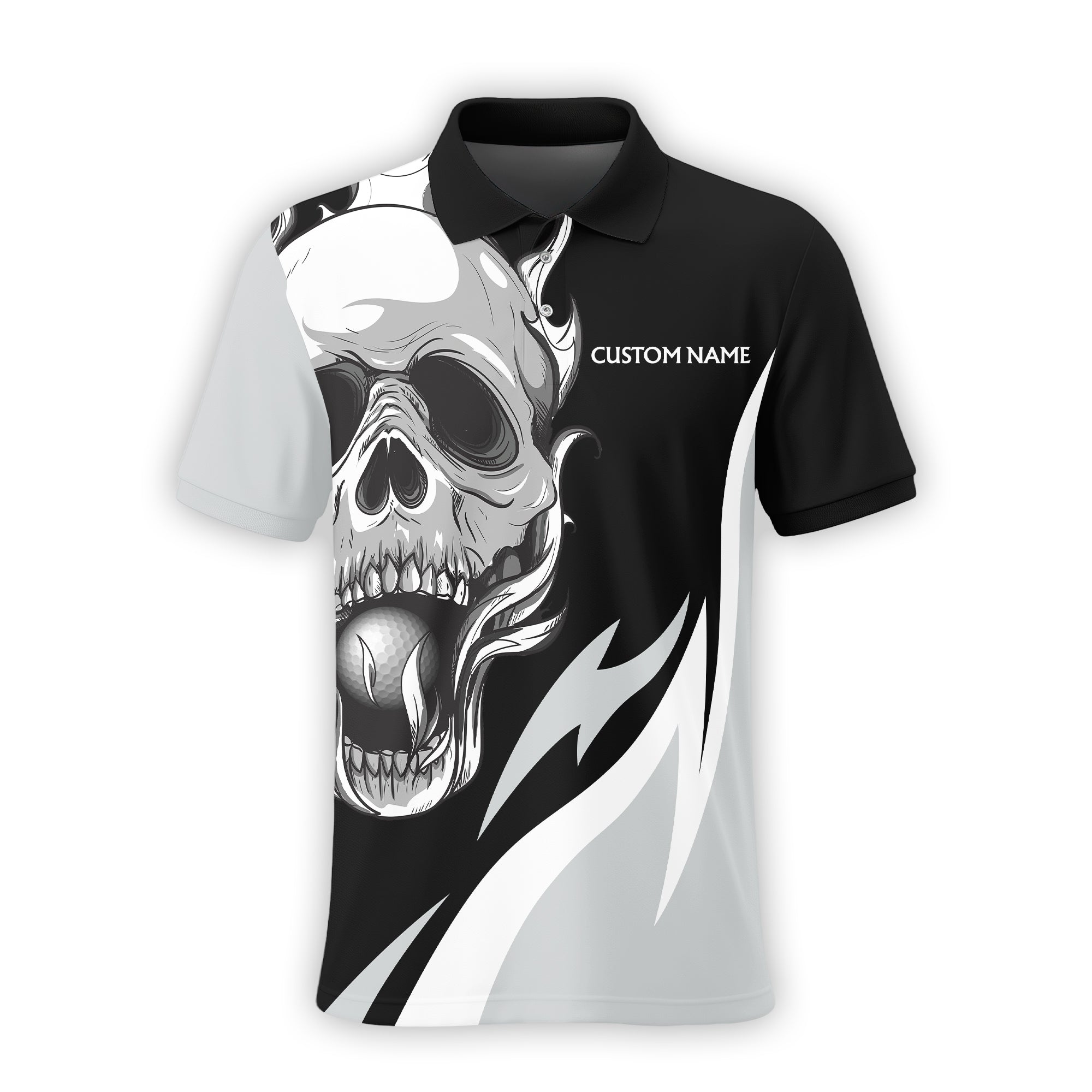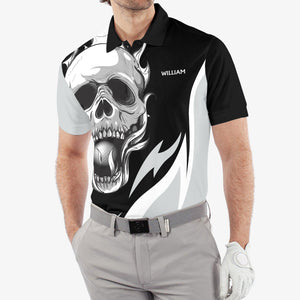 Skull Golf Shirt, Custom Name Polo Shirt, Present For Golfer