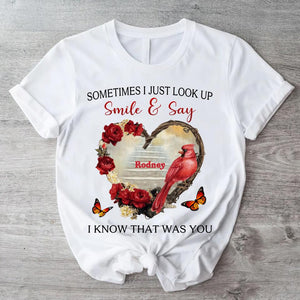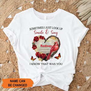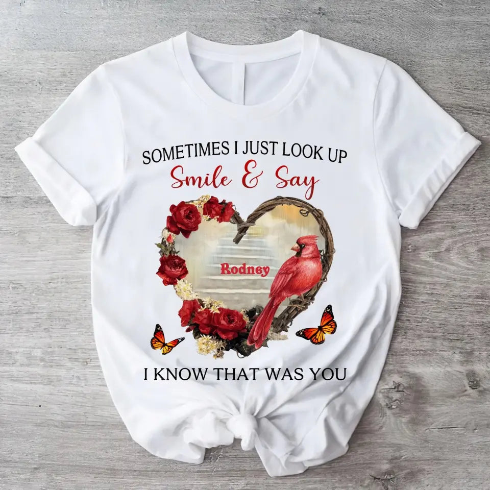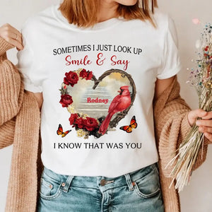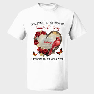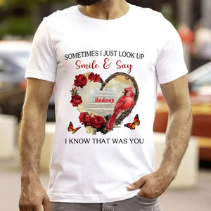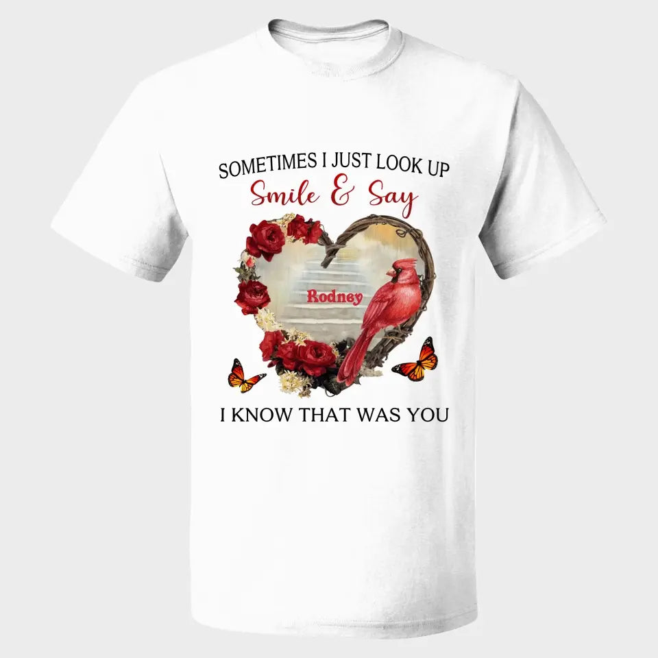 Sometimes I Just Look Up Smile And Say I Know That Was You Personalized T-Shirt, Custom Name Mom Shirt, Gift for Mom