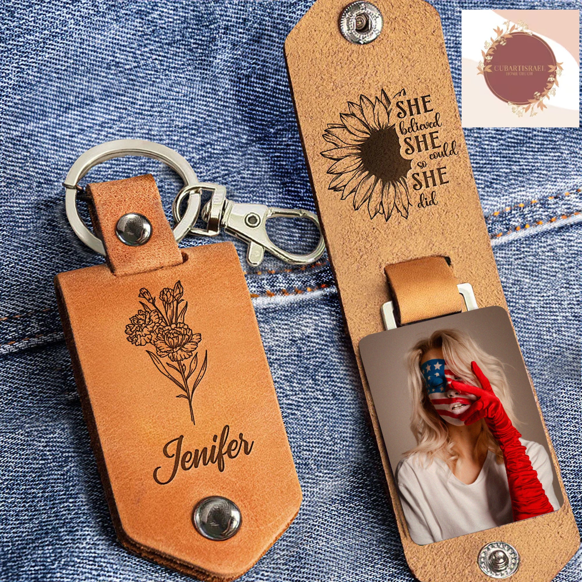 Brighten someone's day with our "Sometimes You Forget You're Awesome, So This Is Your Reminder" Birthday Flower - Personalized Leather Photo Keychain. This unique keychain serves as a daily reminder of awesomeness and the beauty of birthdays. Personalize it further with a name, making it a truly special keepsake. Our engraved keychain is a thoughtful birthday gift, perfect for him, her, family, friends, and even coworkers. The blend of a personalized touch, the charm of a birthday flower, and the durability of leather makes this keychain a memorable and meaningful present. Celebrate the special people in your life with this delightful, custom-made accessory that carries both sentiment and style.