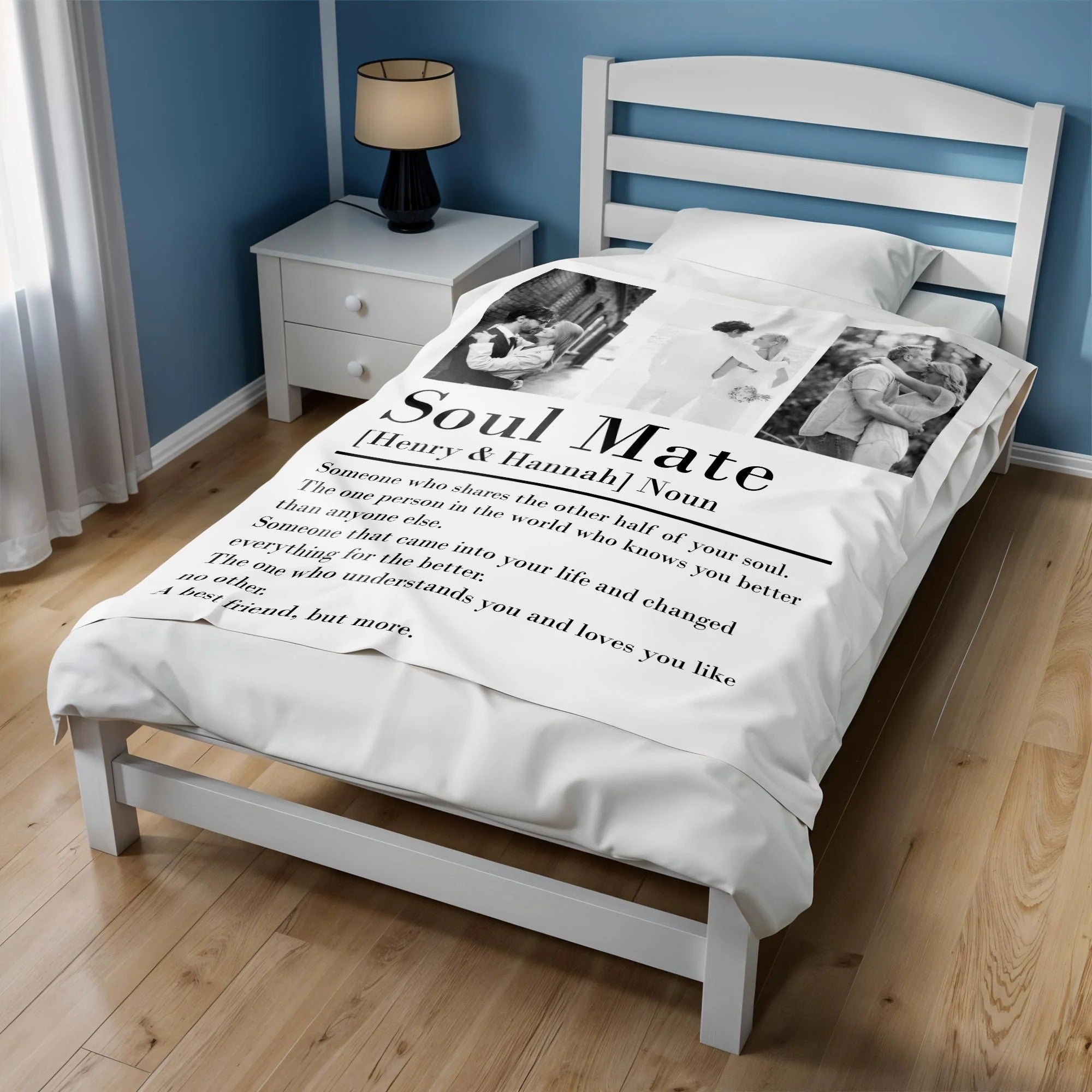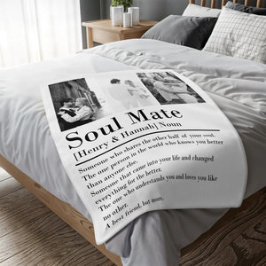 Soul Mate Definition Quilt Blanket, Personalized Custom Blanket, Valentines Couple Gift, Couple Anniversary Gift